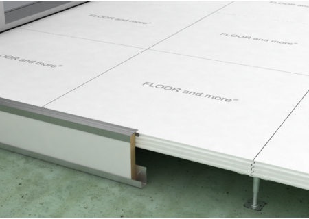 Das Trockenhohlbodensystem FLOOR and more® comfort sorgt mit seinem intelligenten Heiz- und Kühlsystem für ein angenehmes Raumklima. Oberseitig vorgefräste Nuten zur Aufnahme der Heiz- und Kühlleitungen werden nach der Montage mit Verfüllmasse geschlossen.