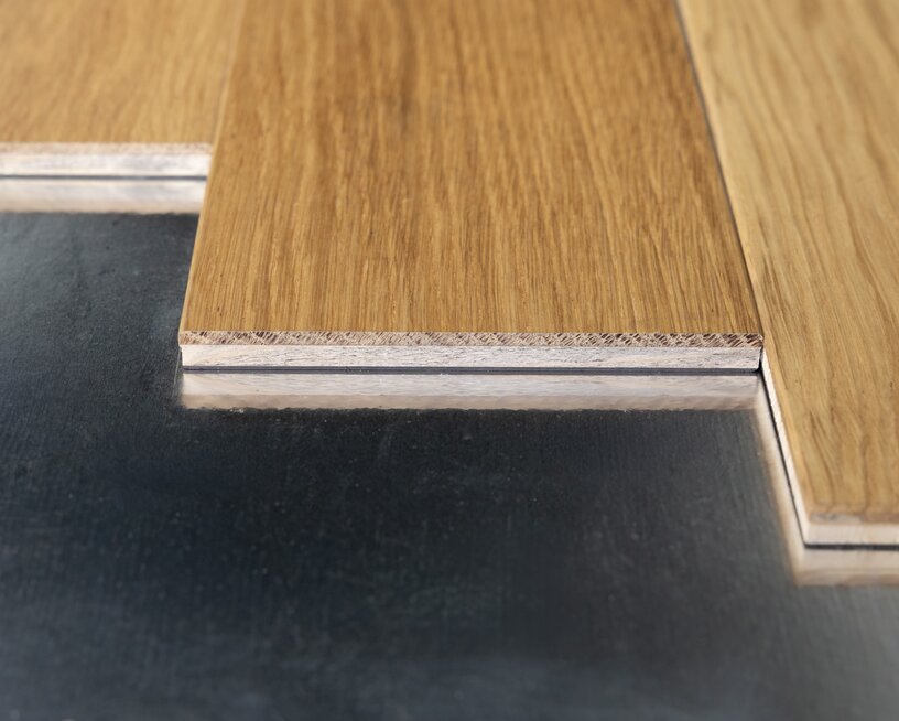 Die Landhaus Diele flex als 2-Schicht Parkett verleimt, lebt von der Charakteristik und den Holzmerkmalen der Eiche. Als Deck wird eine Decklage identisch einem klassischem Mehrschichtparkett mit 4mm Nutzschicht verwendet. Das Holzbild kann in einer schlichten astfreien Sortierung oder in einer rustikalen astigen Sortierung gewählt werden. Die Fichte Mittellage verleiht der Konstruktion eine hohe Stabilität.