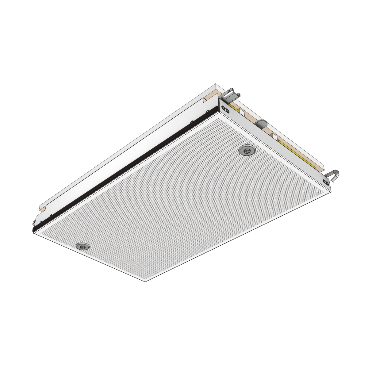 abgeklappte Deckenelemente können für eine große Revisionsöffnung (ca. 2.500 x 2.000 mm) zusammengeschoben werden