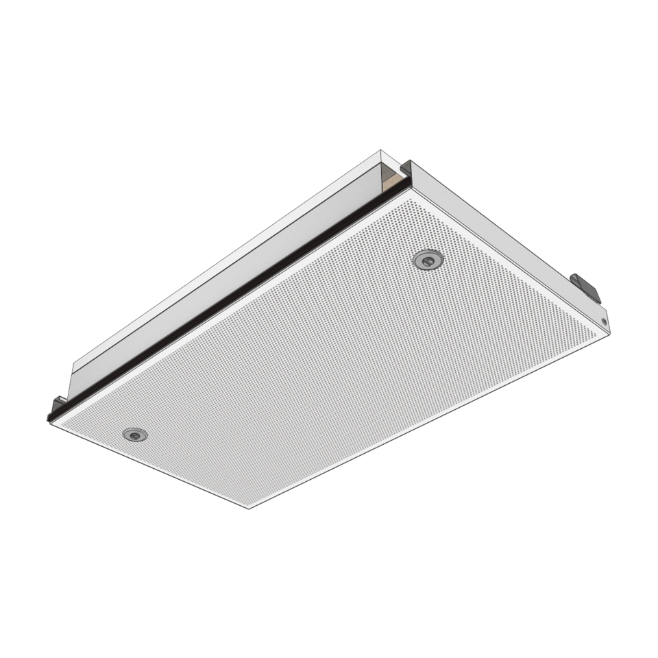 • werkzeuglose Revisionsmöglichkeit der einzeln bedienbaren, abklappbaren und verschiebbaren Deckenelemente