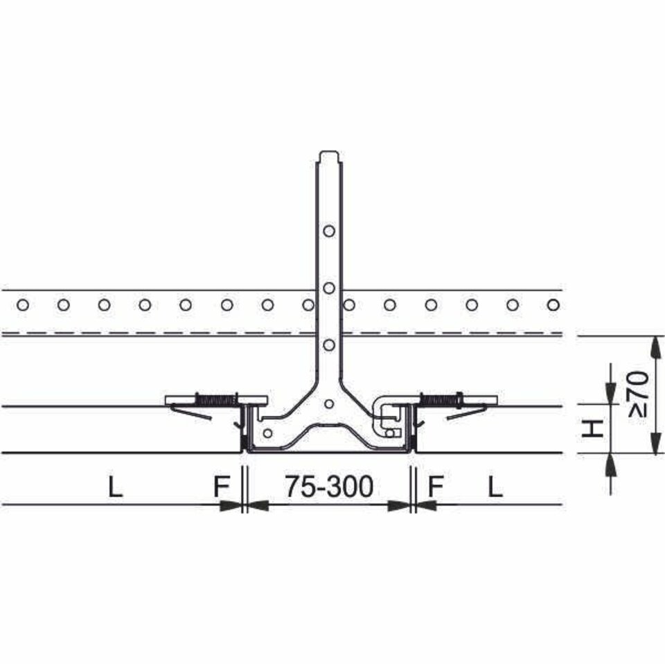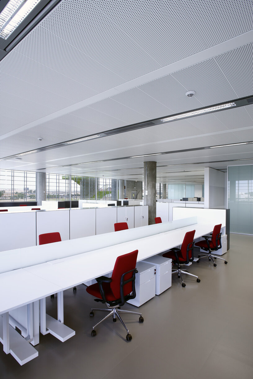 Beim System LMD-B 100 übernehmen sichtbare Bandrasterprofile in linearer Anordnung die Deckenaufteilung. An den Bandrasterprofilen können bei Bedarf Trennwände befestigt werden, sodass Räume individuell aufgeteilt werden können. Die markanten Profile können für technische Einbauten genutzt und in strahlenförmiger Anordnung einfach an Gebäudeformen angepasst werden. Diese Bandrasterdecke ist ein platzsparendes und preisgünstiges Deckensystem. Je nach Revisionsbedarf stehen aufgelegte und abklappbare Deckenplatten zur Verfügung, welche auch kombiniert eingesetzt werden können.