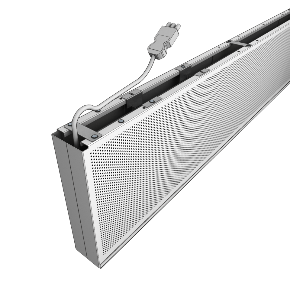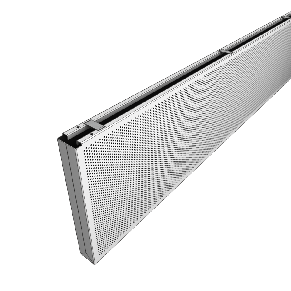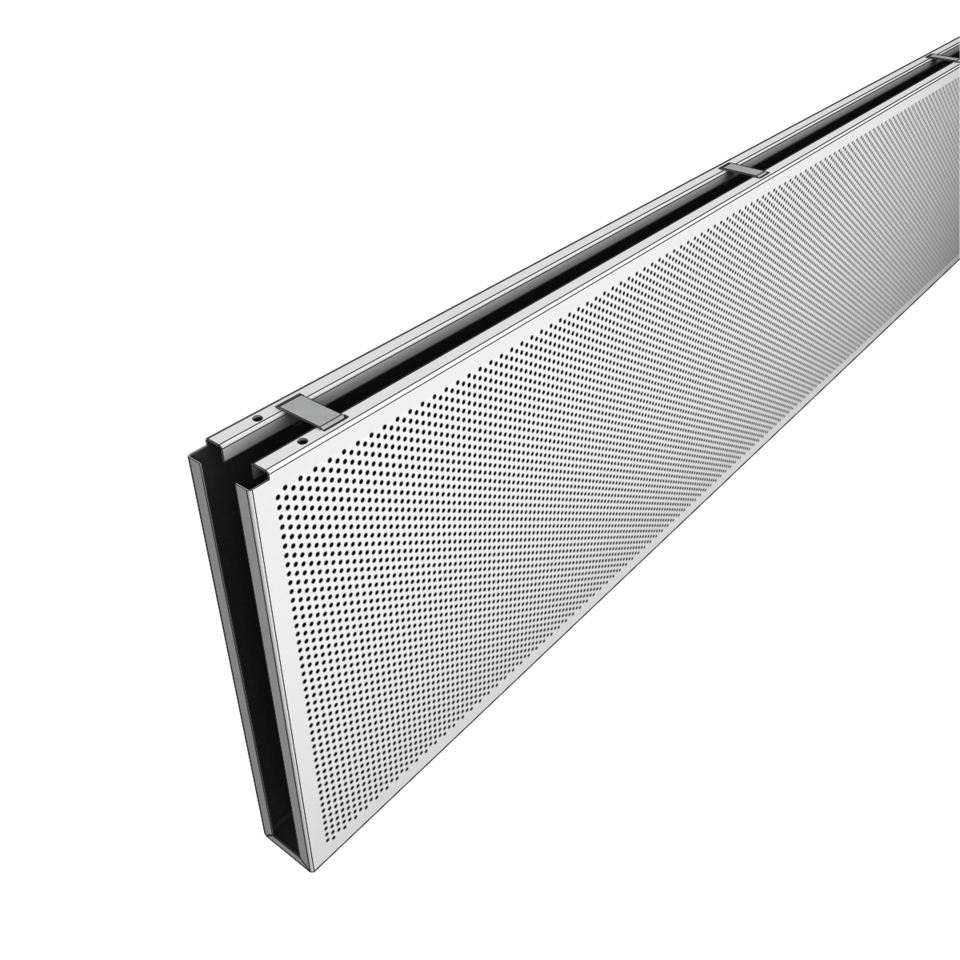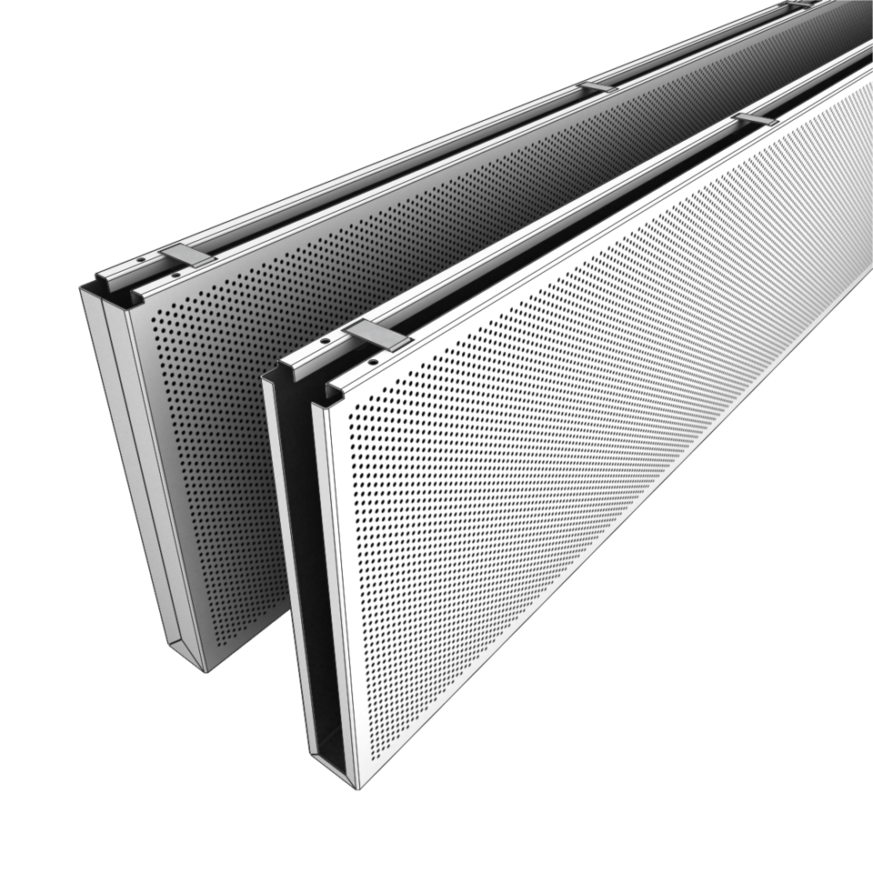 Die geradlinige Anordnung der einteiligen Metallbaffeln bietet Ihnen vielseitige Verlegungsmöglichkeiten durch verschiedene Achsraster und Abmessungen der Baffeln. Der individuelle Baffelabstand erlaubt eine einfache Integration erforderlicher Einbauten im frei einsehbaren Deckenhohlraum zwischen den Baffeln. Die Grundkonstruktion aus CD-Profilrost gewährleistet eine einfache und schnelle Montage.
