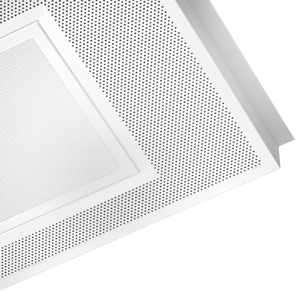 Die Systemleuchte IS 22 ist rahmenlos und flächenbündig in das Metalldeckenelement integriert und wird als hochwertiges und kompaktes Gesamtmodul ausgeliefert. Die Leuchte weist keinerlei farbliche Abweichung zur Deckenplatte auf.