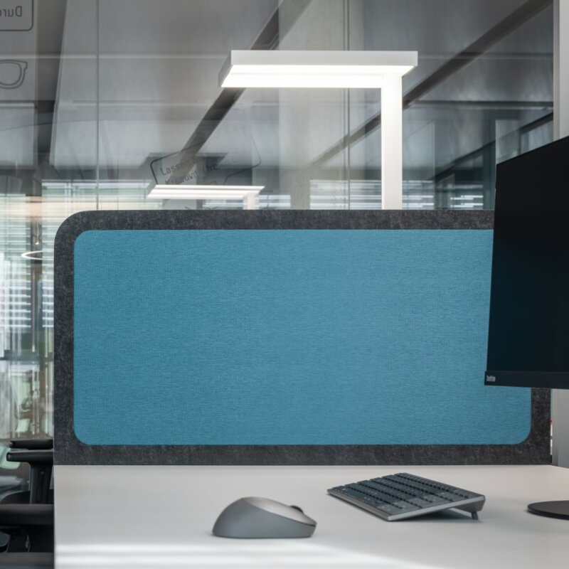 Teilen Sie Schreibtischgruppen mit MUTE+® Tischabsorbern in Klangzonen, die vor Lärm und Ablenkungen schützen, und überzeugen Sie sich vom klaren Design und der Farbenvielfalt.