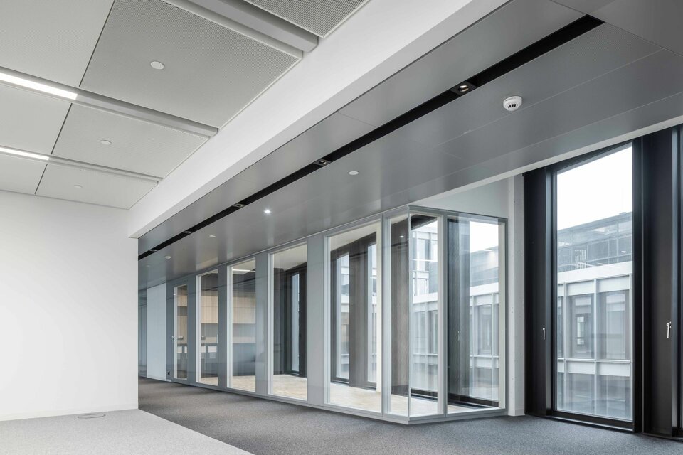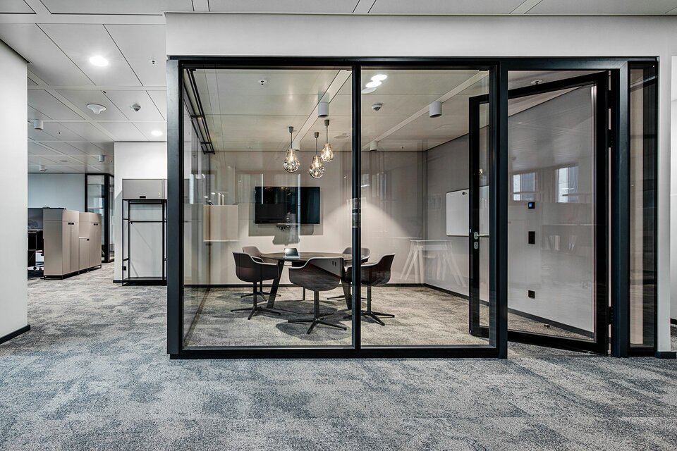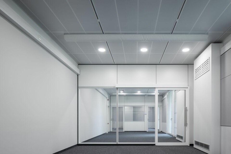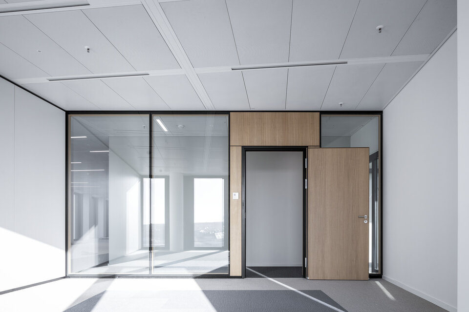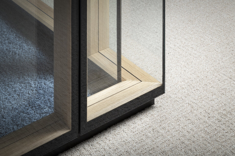Wir bieten Ihnen individuelle Gestaltungsmöglichkeiten durch Furnierung und farbliche Gestaltung der Glastrennwand-Profile. Zudem kann die Helligkeit mittels Integration von Jalousien im Scheibenzwischenraum ganz einfach reguliert werden.