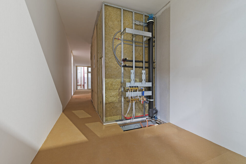 Die Vorteile der NORIT-Fußbodenheizung, wie eine schnelle Verlegung sowie Begehbarkeit in trockener Bauweise, ergänzten sich ideal mit Containerraummodulen. Maßgebliche Vorteile des modularen Bauens, gepaart mit NORIT-Produkten.