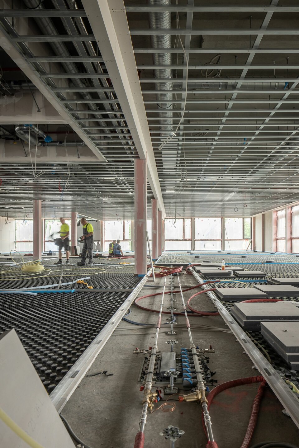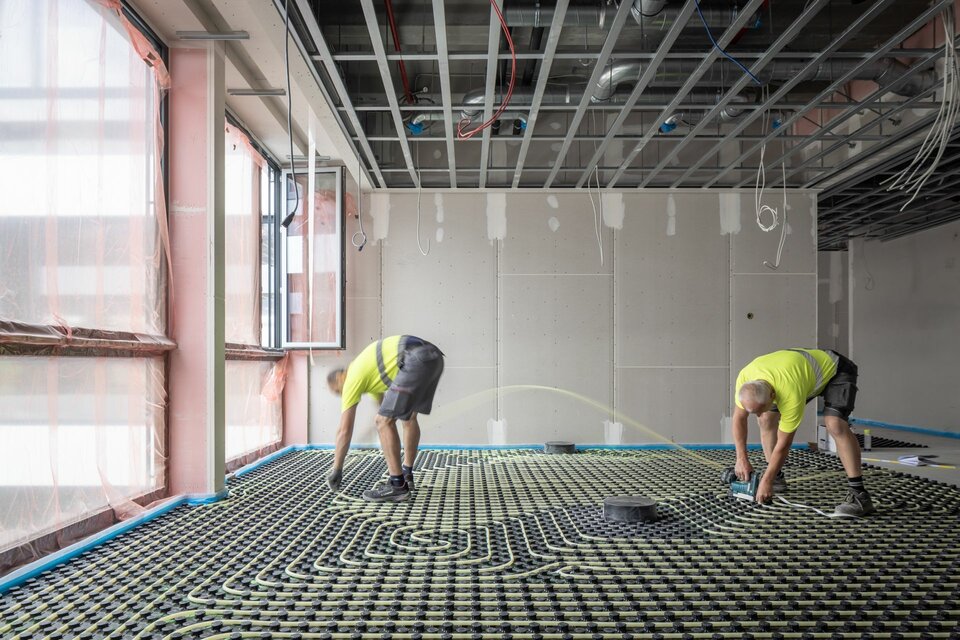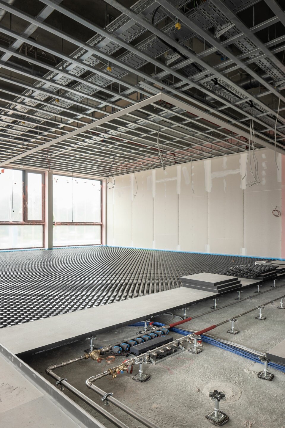 Für die Lindner Group umfasst das Projekt die Ausstattung des neuen Verwaltungsgebäudes mit dem Hohlbodensystem CAVOPEX comfort. Das Leistungsspektrum beinhaltet dabei die präzise Montage der Schalung, die Installation und das Vergießen der Heizrohre sowie die Einbringung des Fließestrichs auf Basis von Calciumsulfat. Der finale Schritt umfasst die fachgerechte Verlegung des Bodenbelags. Das CAVOPEX-System bietet eine effiziente, wirtschaftliche Umsetzung.