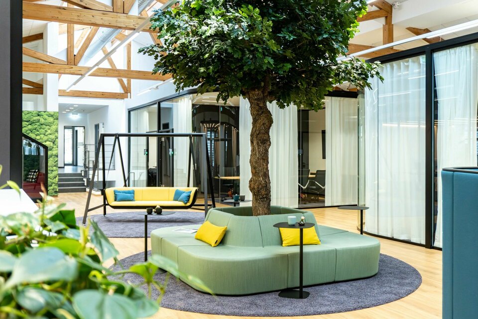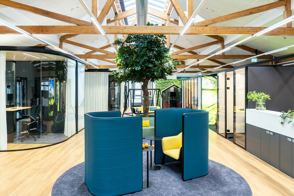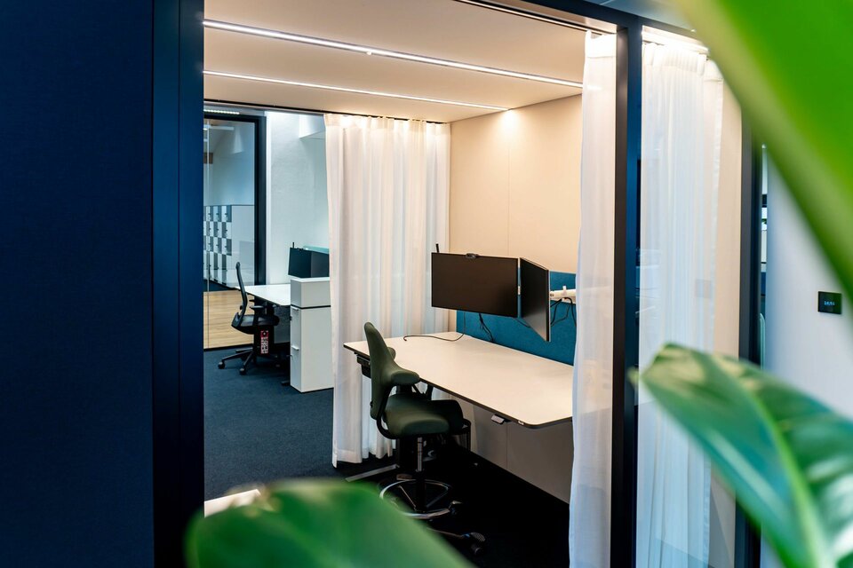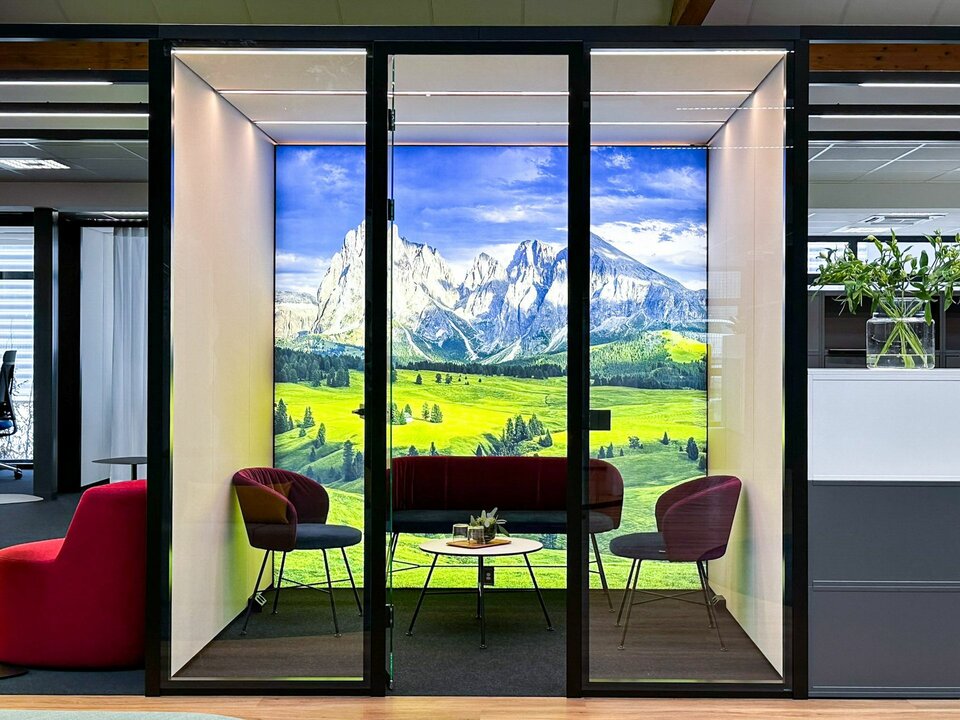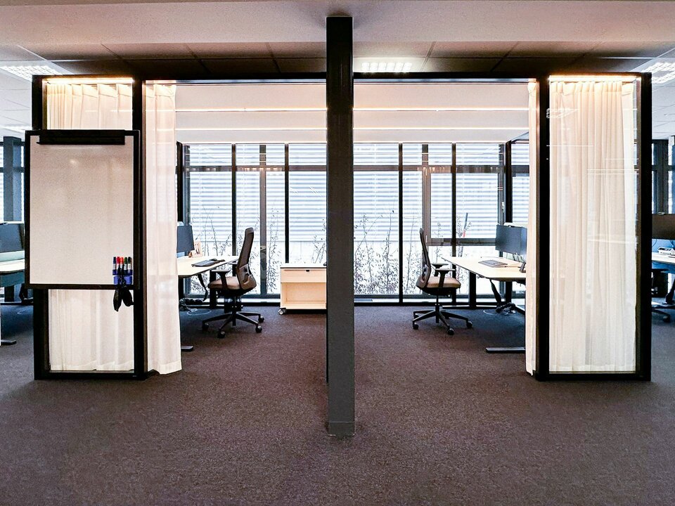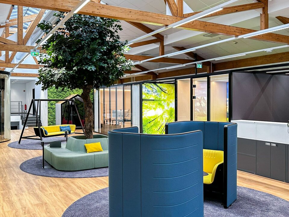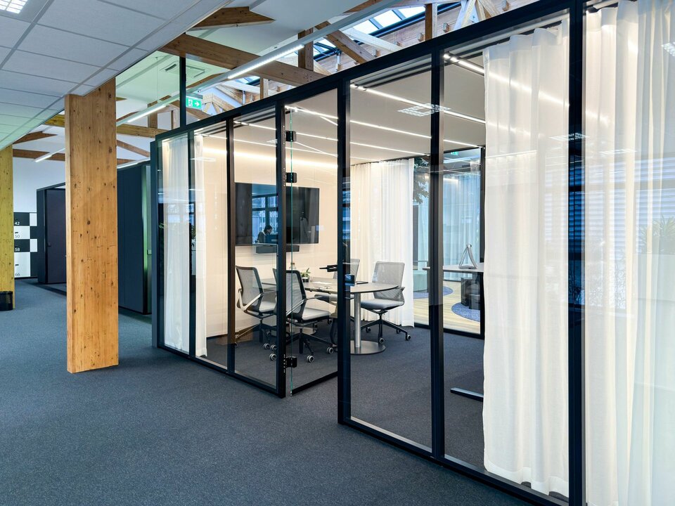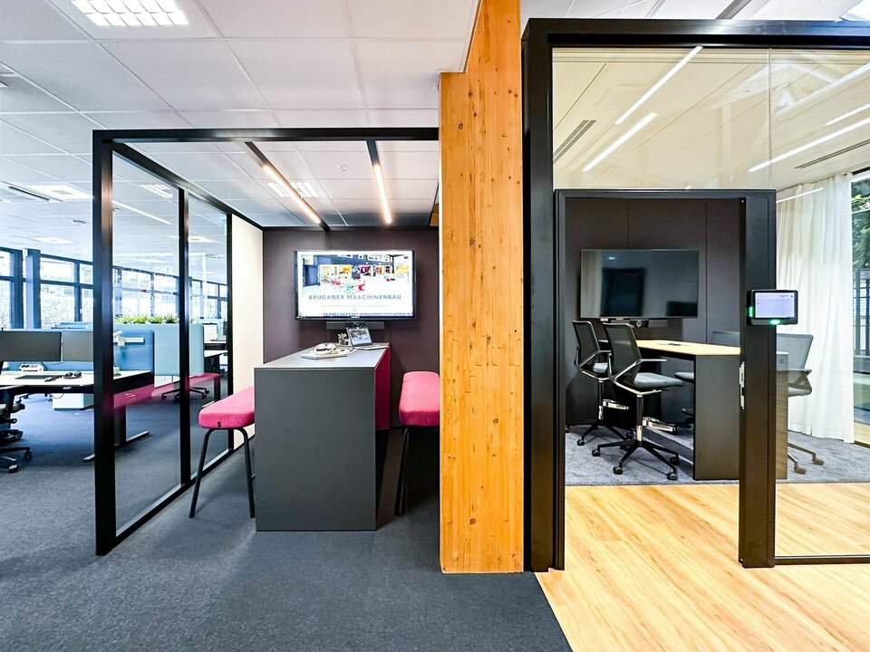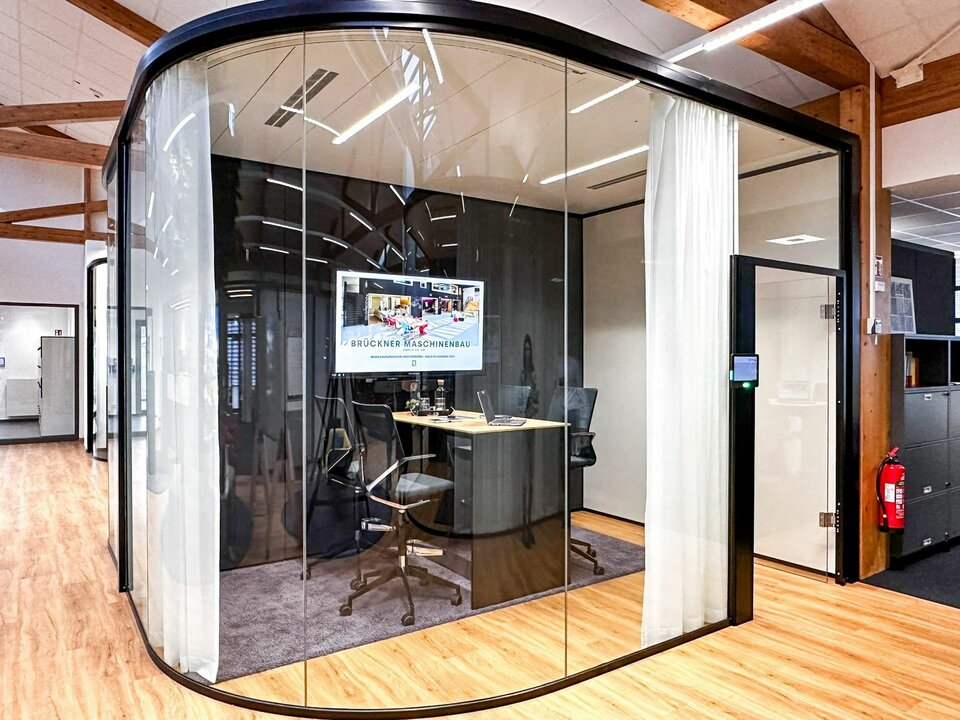 Im Rahmen dieses Pilotprojekts zur Entwicklung neuer Bürowelten hat die Lindner Group maßgeblich mit einer Reihe an hochwertigen Raumlösungen beigetragen. Besonders hervorzuheben sind die flexiblen Raum-in-Raum-Systeme: Die gerundeten Scheiben des Lindner Cubes, bieten eine ästhetische und funktionale Bereicherung der Bürolandschaft und tragen zur Schaffung von offenen und gleichzeitig schallgeschützten Bereichen bei. Ergänzend wurden die flexiblen CAS Rooms integriert, die den Anforderungen an moderne Büroarbeitsplätze gerecht werden und eine hohe Anpassungsfähigkeit bieten. Darüber hinaus sorgen die hochwertigen Glastrennwände Lindner Life Pure 620 für transparente und akustisch geschützte Zonen, die die Kommunikation und Zusammenarbeit fördern. Diese maßgeschneiderten Lösungen tragen entscheidend zur visuellen und funktionalen Optimierung der neuen Arbeitswelten bei und bieten den Mitarbeitenden von Brückner Maschinenbau eine effektive und ansprechende Arbeitsumgebung.