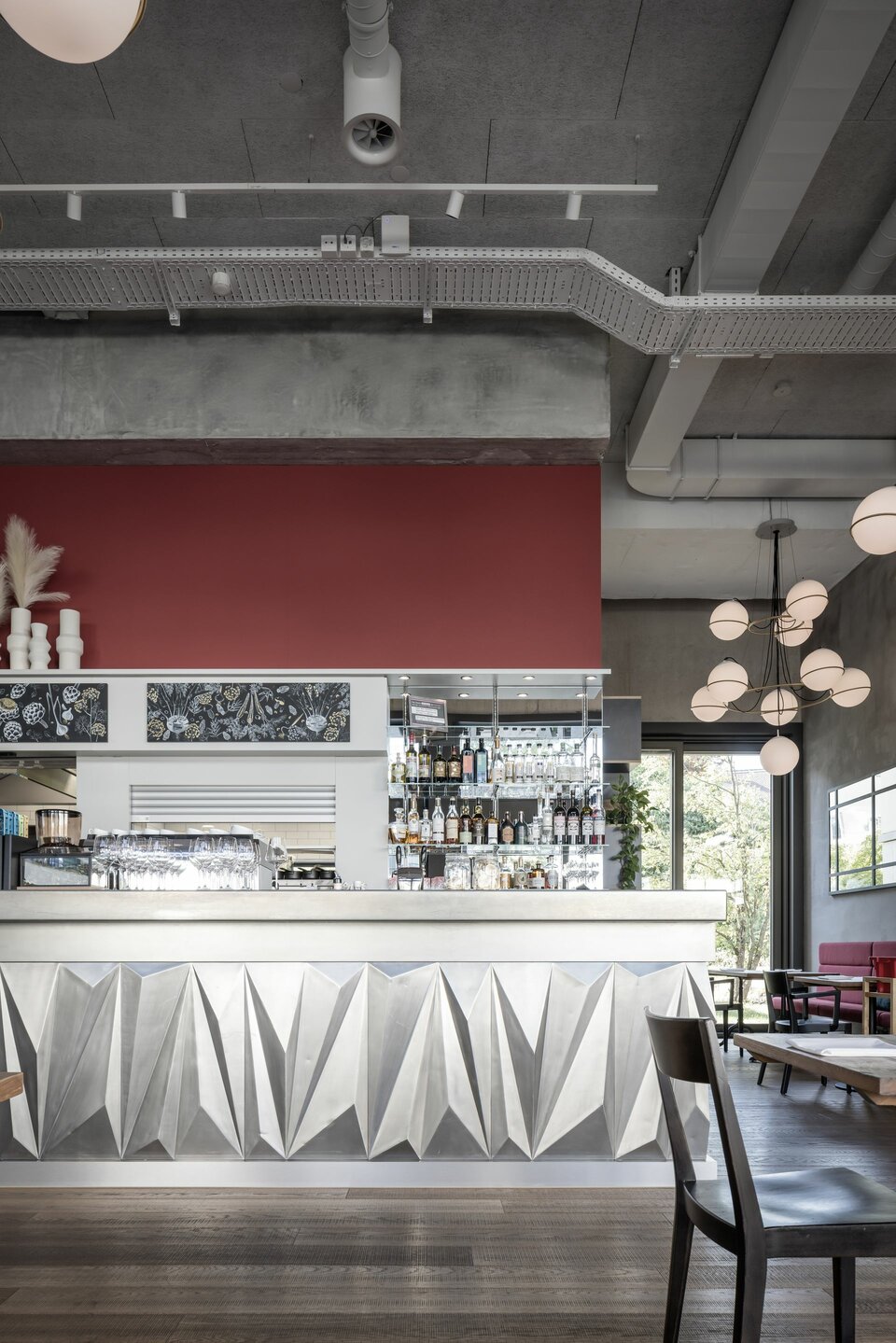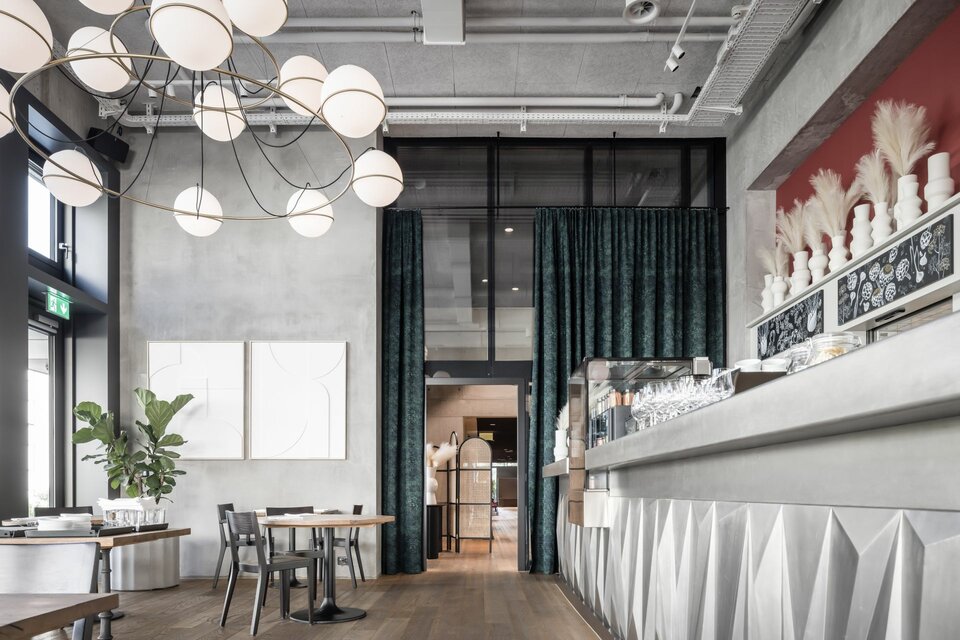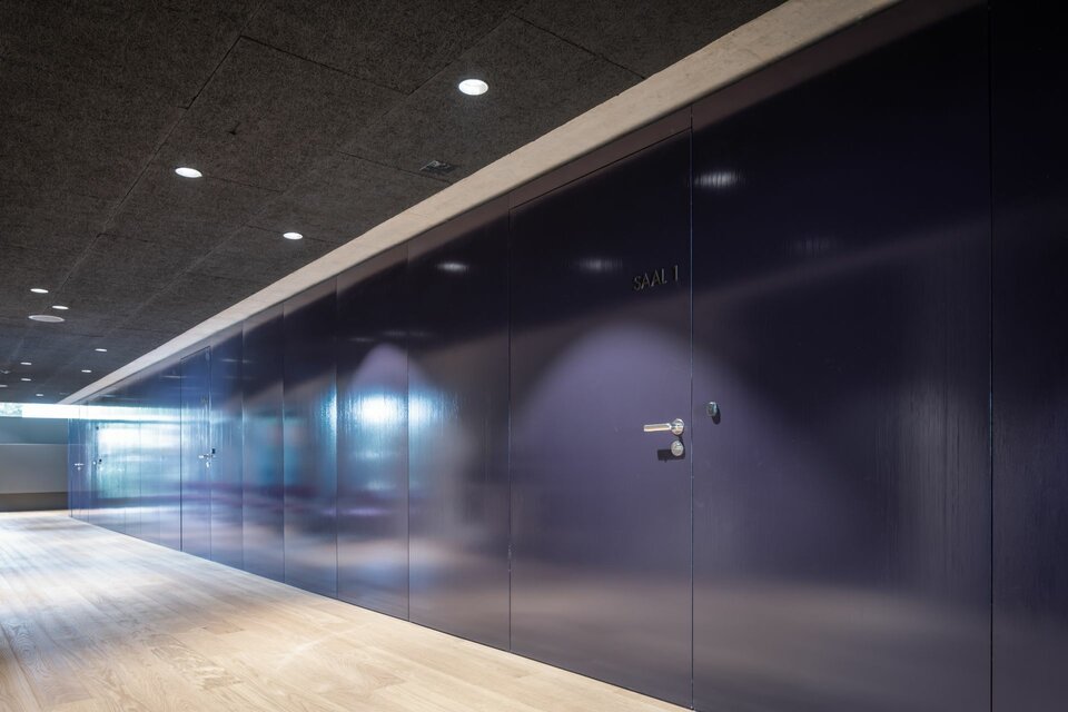 Die Lindner Group wurde mit der Ausführung diverser Innenausbaugewerke für die Ersatzneubauten beauftragt. Dabei spielte insbesondere der Brandschutz eine große Rolle: Die Glastrennwand Lindner Life Freeze wurde daher in EI30 hergestellt und um das Aluminiumglastürelement GTB ADS 80 FR30 ergänzt. Eine Bullaugenfestverglasung in EI60, ein Brandschutzfaltvorhang sowie ein automatisches Brandschutzschiebetürelement im Bereich des Zugangs zur Küche erhöhen die Sicherheit in den Räumlichkeiten. Für ein außergewöhnliches Design wurde die Wandbekleidung Lindner Free Metal aus Stahlplatinen gefertigt und mit einer Pinselstrichoptik versehen - eine Herausforderung für die Produktion, doch die Mühen zahlten sich aus. Die Metalltürelemente im gleichen Design wie die Wandbekleidung sorgen für ein harmonisches, aufeinander abgestimmtes Gesamtbild. Ein Rolltor bei der Essensausgabe und zwei Planumverglasungen im Bereich der Kindertagesstätte komplettieren das Leistungspaket: Die Vielzahl unterschiedlicher Produkte, darunter diverse Sonderlösungen, erschwerten die Planung und Koordination des Auftrags ‒ das Ergebnis ist jedoch mehr als zufriedenstellend und erfüllt höchste Standards in Bezug auf Sicherheit und modernes Design.