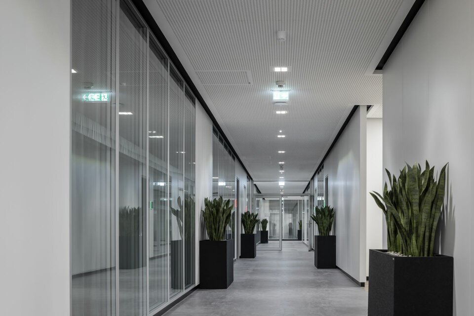Für die Revitalisierung des STIHL Werks 6 in Waiblingen übernahm Lindner die Bauleitung aller Gewerke – inklusive Terminplanung, Koordination und Durchführung der Baubesprechungen. Zu Beginn des Projektes erfolgte dabei der Rückbau der bestehenden Trennwandsysteme inklusive Schadstoffentsorgung und Freimessung des Baufeldes. Zudem lieferte Lindner umfassende Innenausbaulösungen für das Werksgebäude: Neben Glastrennwandsystemen in verschiedenen Brandschutzklassen und Schallschutzvarianten wurden auch Metall- und Stoffabsorber zur Optimierung der Akustik installiert. Darüber hinaus finden sich Bodenbeläge aus Vinyl und Teppich - sowie diverse Türen, teils mit Brandschutz und Oberlichtern ausgeführt, im Gebäude wieder. Besonders bemerkenswert ist dabei der F30-Fluchttunnel aus Lindner Trennwänden, F30-Trockenbaudecken und Schotten: Dieser führt TGA-Installationen ohne zusätzliche Brandschutzmaßnahmen. Umfangreiche Maler- und Trockenbauarbeiten mit Loch- und F30-Decken in Deckensegel-Optik runden das Projekt ab.
