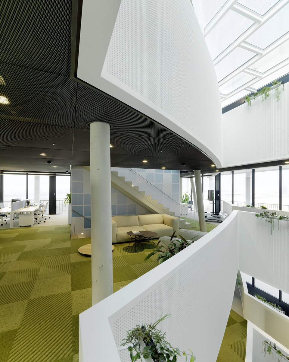 Das Immobilienunternehmen C&P errichtete im österreichischen Graz ein neues Hauptquartier. Die Gestaltung des Gebäudes orientiert sich am Corporate Design sowie den zentralen Werten des Unternehmens: Transparenz, Mehrwert, Struktur, Flexibilität, Bewegung und Effizienz. Auf dieser Basis schuf das örtliche Architekturbüro INNOCAD einen klar strukturierten Kubus mit über 1.900 m² Bürofläche. Bei der Konzeption der Büroumgebung wurden die Bedürfnisse der Mitarbeiter und die aktuellsten Erkenntnisse zur der Gestaltung von Open-Space-Büros vereint, um die sogenannten Creative Spaces zu schaffen. Es handelt sich um ein Raumkonzept mit verschiedenen, aktivitätsbasierten Zonen um das optimale Umfeld für jede Form der Arbeit bereitzustellen.