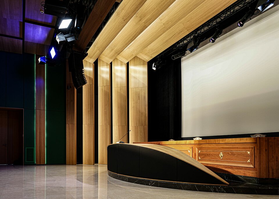 CFO Pharma ist ein führendes albanisches Pharmaunternehmen, das sich auf die Registrierung, den Import sowie den Vertrieb von Pharmazeutika in Albanien spezialisiert hat. Nach der Eröffnung des neuen Headquarters in Tirana in 2022 wurde nachträglich ein weiterer Konferenzraum ausgebaut, der speziell für anspruchsvolle Meetings konzipiert wurde. Dieser Raum bietet eine moderne, flexible Umgebung, die durch audiovisuelle Technologie unterstützt wird. Die Planung berücksichtigte sowohl Komfort als auch Akustik, um eine produktive, zurückgezogene Atmosphäre für strategische Meetings zu schaffen.