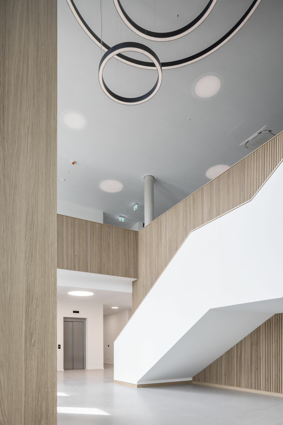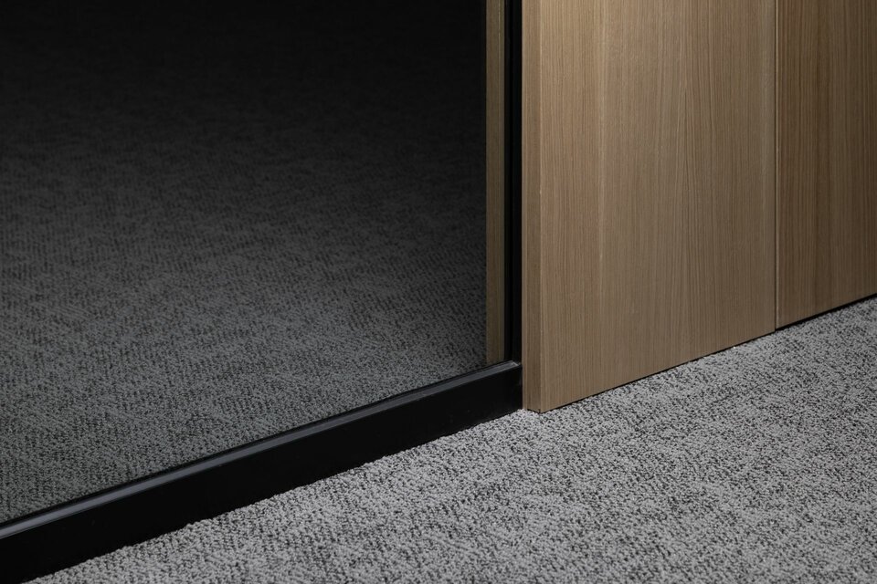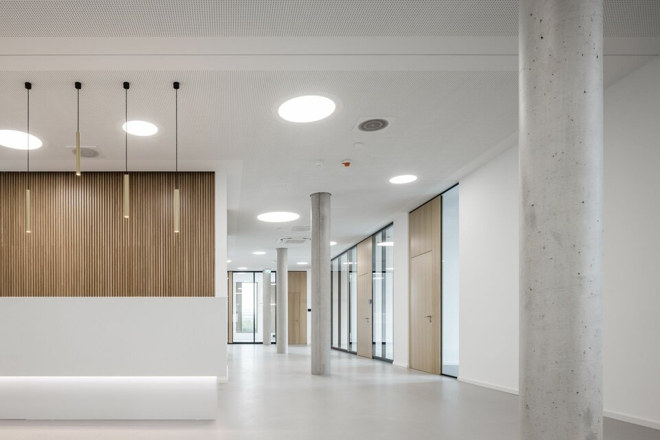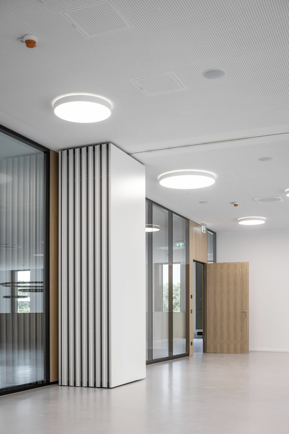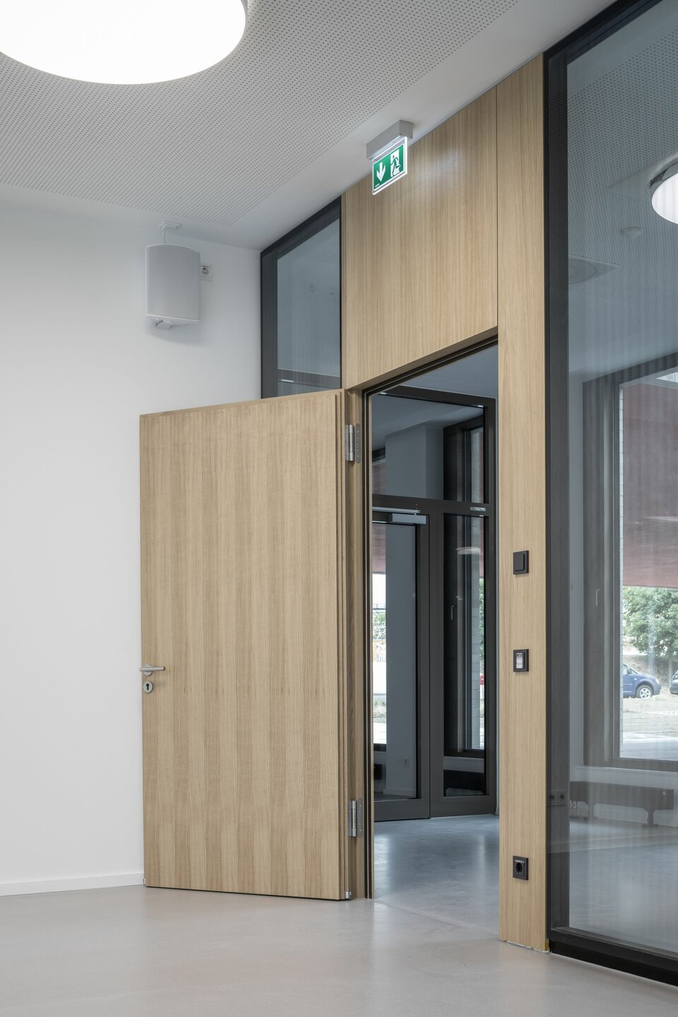 Die Lindner Group lieferte diverse Wand- und Türsysteme für das Projekt. Die Glastrennwände Lindner Life Freeze 137 und Lindner Life Pure 620 fungieren als transparente Raumtrennungen und lassen dabei die Helligkeit in den Räumen erhalten. Bei der Lindner Life Pure 620 wurde der Stoß der Verglasung mit Holzpaneelen belegt – damit schafft die Glastrennwand eine optimale Verbindung zu den angrenzenden Holztürblättern, die genauso wie die dazugehörige Portaltür und Zarge sowie die Trennwandprofile in Eiche furniert wurden. Die Flexibilität der Glastrennwände zeigte sich, als sich der Kunde im Laufe der Zeit dazu entschied, die Bürowelten noch offener zu gestalten: Gemeinsam mit Lindner wurden einige der Wandelemente daraufhin schnell und unkompliziert wieder abgebaut.