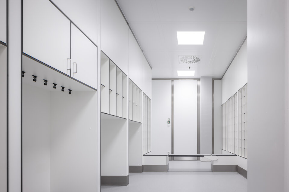 Integrierte Leuchten sorgen zusätzlich für beste Arbeitsbedingungen in den Reinräumen.