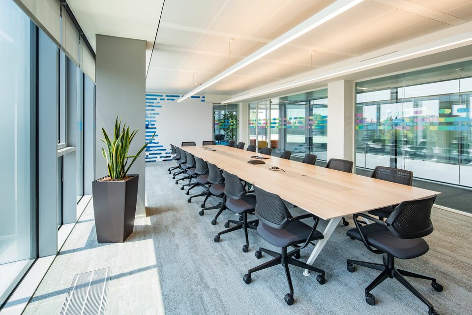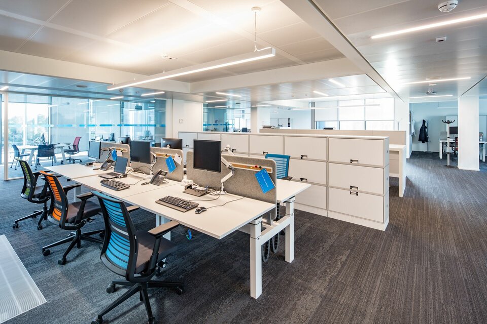 Lindner konnte zum Konzept ca. 4.350 m² lineare Bandrasterheiz-/kühldecke Plafotherm® B 100 inklusive Lüftungshauben beitragen. Das Deckensystem besitzt eine lineare Optik und geringe Aufbauhöhe. Außerdem verbaute Lindner etwa 500 m² des Deckensystems Plafotherm® GK Hekda aus Gipskarton, ebenfalls mit Heiz- bzw. Kühlfunktion.