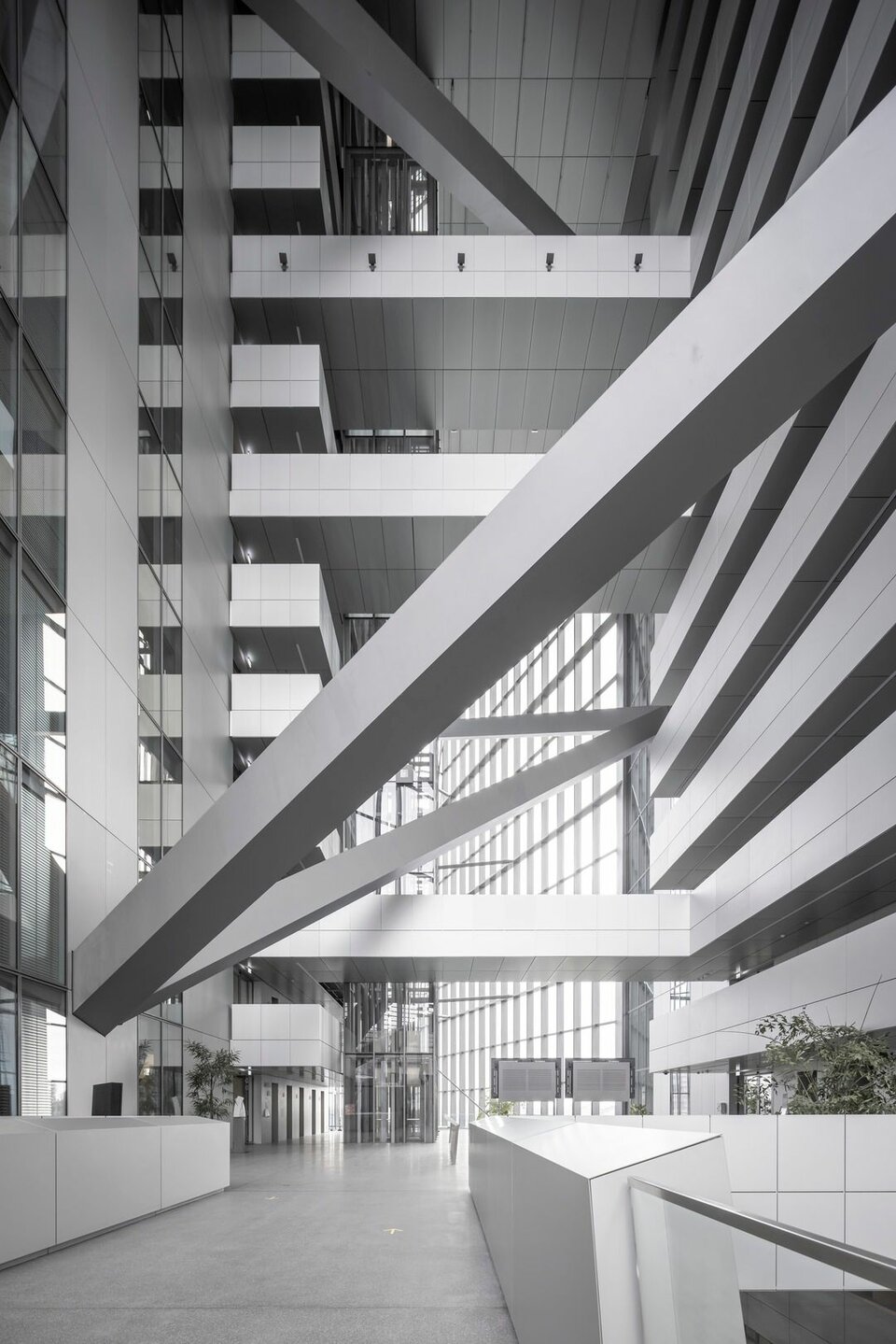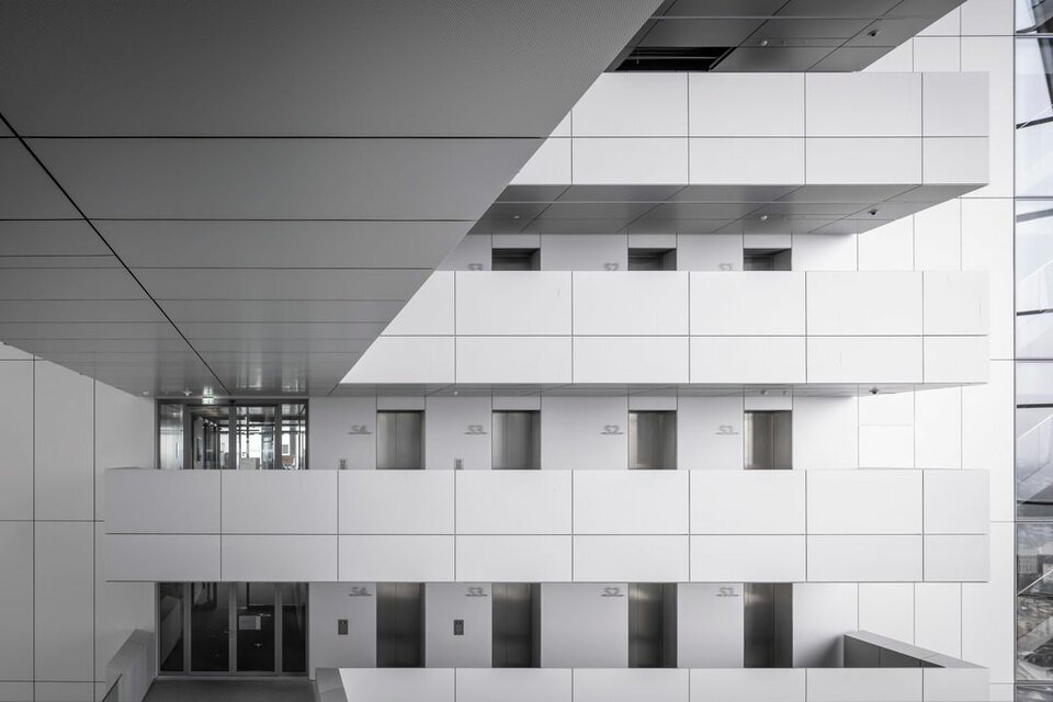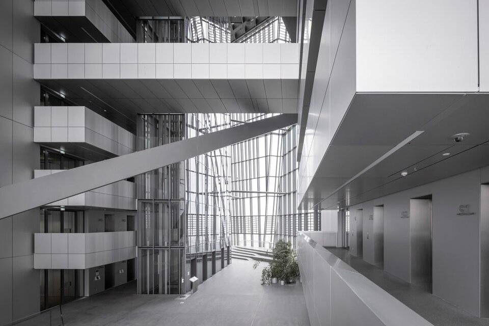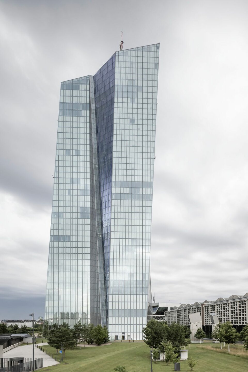 Das Gebäudeensemble besteht aus drei Elementen. Den Bestand stellte eine ehemalige Großmarkthalle aus den 1920er Jahren. Anliegend entstanden zwei polygonale Türme, von denen der Nordturm eine Höhe von 185 Meter aufweist. Der Südturm hingegen ist 165 Meter hoch. Aus den Türmen entsteht eine Bruttogeschossfläche von 110.000 m². Als Verbindungselement zwischen den Türmen und der Halle wurde ein Eingangsbauwerk errichtet. In dem neu entstandenen Hauptsitz finden 2.300 Mitarbeiter der Europäischen Zentralbank Platz.
