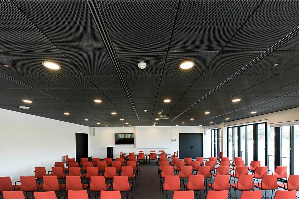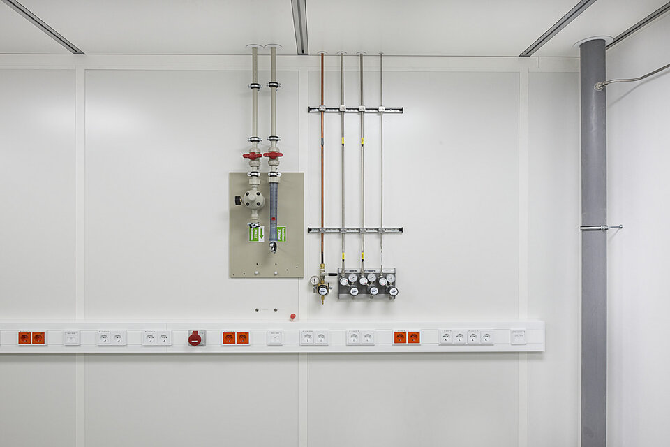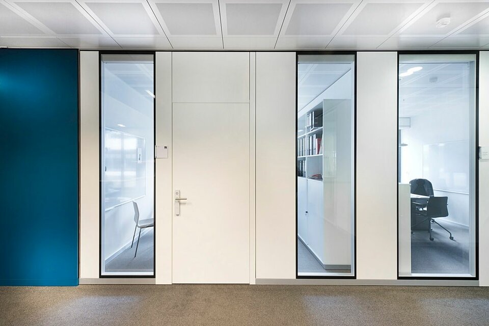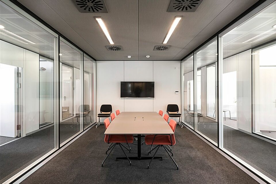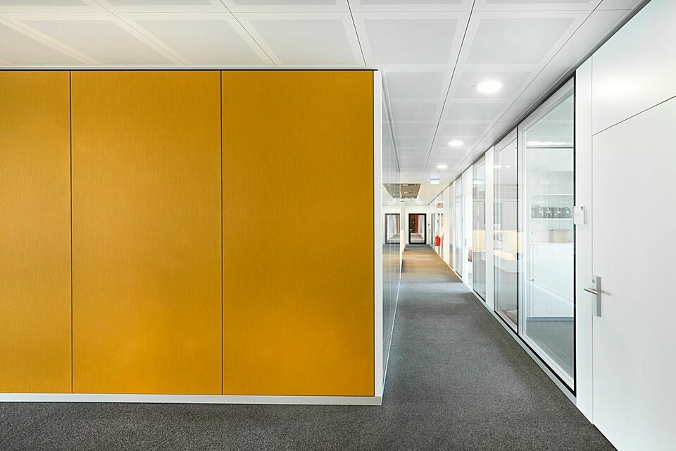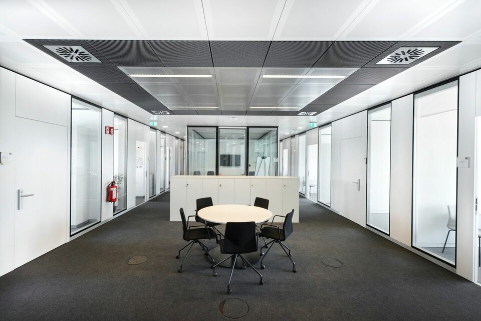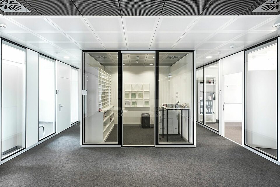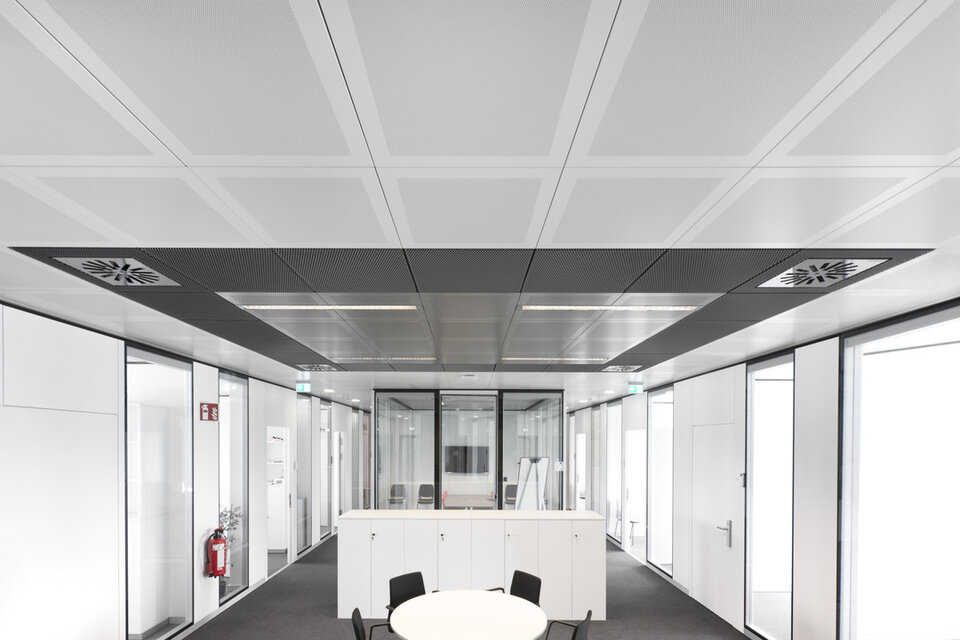 Lindner Reinraumtechnik wurde mit dem Ausbau der Labor- u. Reinraumbereiche beauftragt. Diese Bereiche wurden mit zahlreichen Produkten aus dem Lindner-Angebotsspektrum ausgestattet, darunter Decken, Wände, Böden und Schleusensysteme; zahlreiche Sonderlösungen bedienten die Ansprüche des Projekts. So wurde an einer Stelle ein ganzer Reinraum freistehend errichet, um ein spezielles Belüftungskonzept umzusetzen. In den Bürobereichen des Gebäudes schuf die Lindner AG räumliche Trennung zwischen den zentralen Fluren und den Büros, indem sie Lindner Trennwandsysteme montierte. Die Besprechungszimmer in den Fluren wurden auf die gleiche Art separiert. Schallabsorber mit Stoffbezug schaffen verbesserte Akustik. Neben Trennwänden wurden auch Deckensysteme aus dem Hause Lindner verbaut. LMD-E Einhängedecken finden sich in allen Büros und Flurwegen, wo ihre Optik mit sog. Streckmetallkränzen aufgewertet wurde. Mit Perforation und integrierter Lüftungstechnik bieten die Systeme zudem auch Vorteile im Bezug auf Funktionalität.