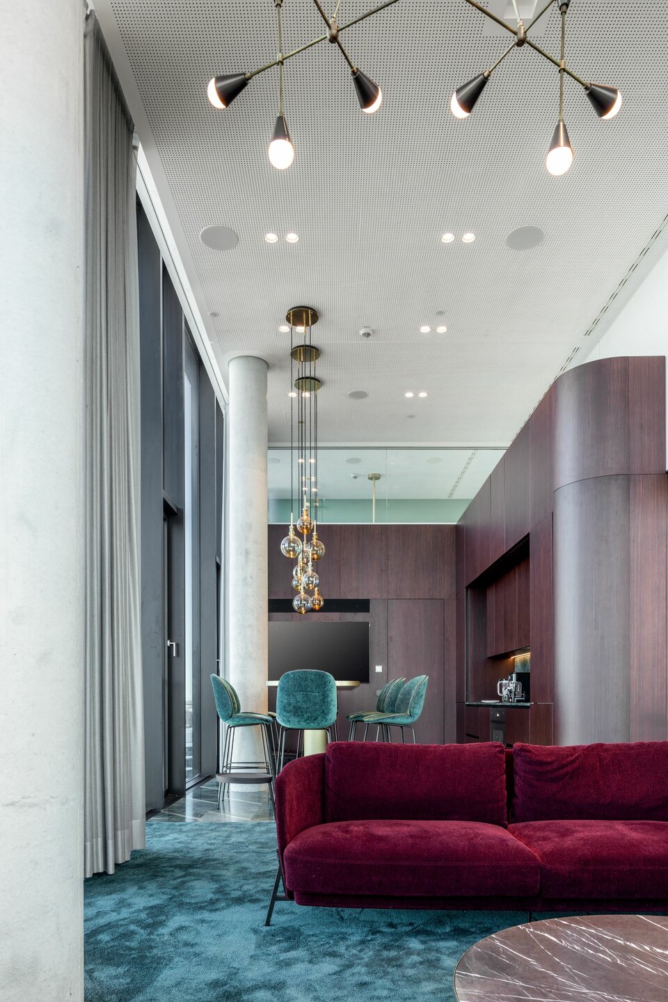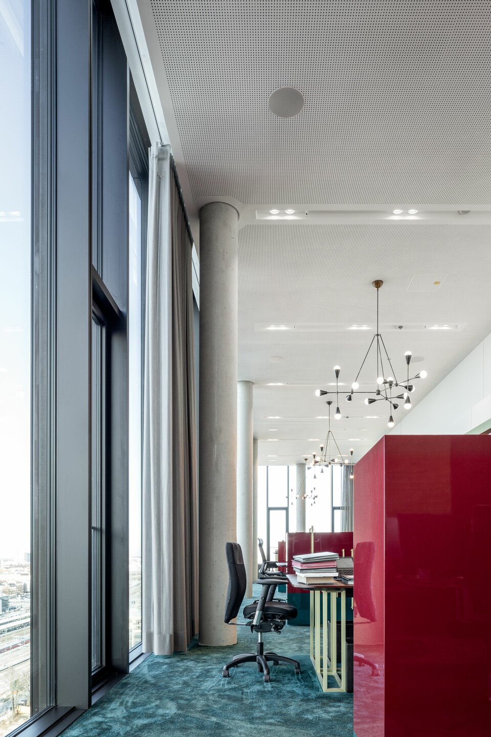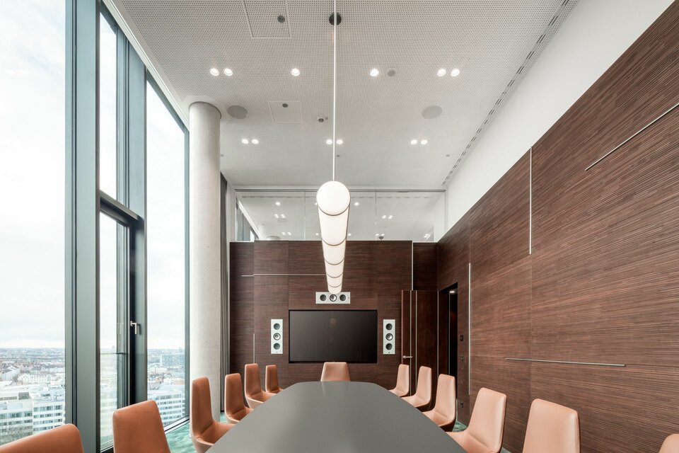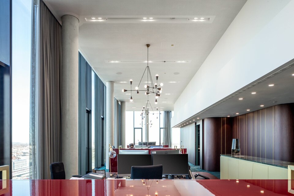 Lindner hat zum HIGHRISE one mit Heiz-/Kühldecken und Isolierarbeiten für die Haustechnik beigetragen. Somit wurde eine effiziente Lösung für die Temperierung und akustische Regulierung der Büroflächen mit minimalsten Energieverlusten aus einer Hand geliefert.