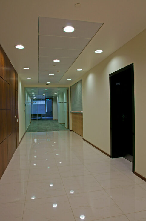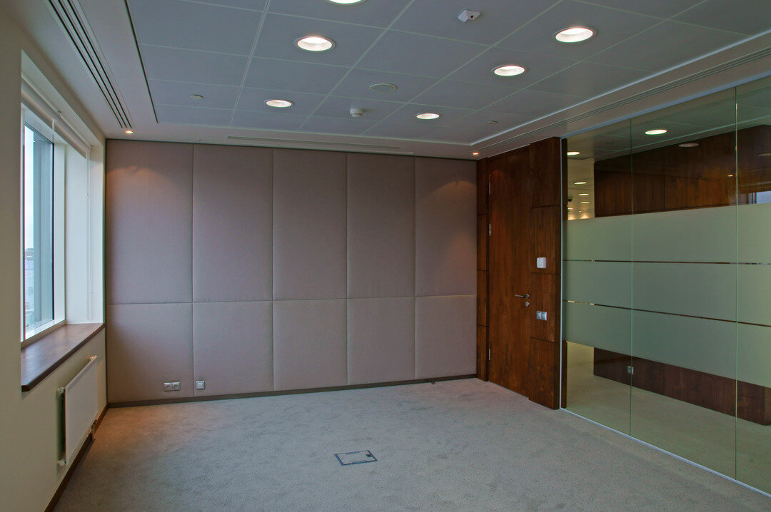 Hogan Lovells ist eine renommierte weltweit agierende Anwaltskanzlei. Lindner stattete das neue Büro in Moskau mit 170 Quadratmetern an perforierten Metalldeckenplatten in unterschiedlichen Größen und einem eingelegten schwarzen Akustikfleece aus. Das System besteht aus einer leicht verarbeitbaren und nicht sichtbaren Unterkonstruktion. Diese Decke kann schnell geöffnet und abgeklappt werden und ist so leicht zugänglich – auch nach dem Einbau.