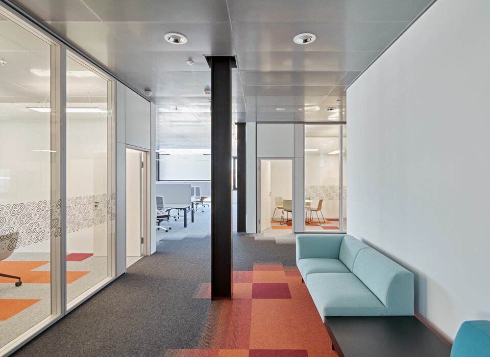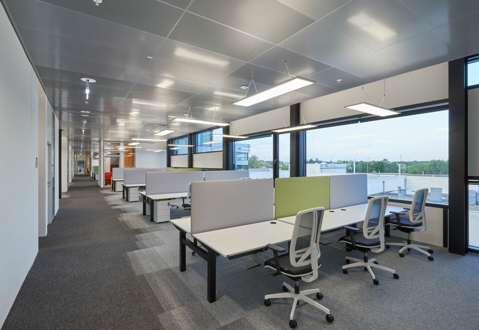 Unter den modern verlegten Belägen, befinden sich unsere Doppel-und Hohlraumbodensysteme. Für eine angenehme Raumtemperatur in den modernen Open-Space Bürokonzepten sorgen unsere Metallheiz-und Kühldecken.