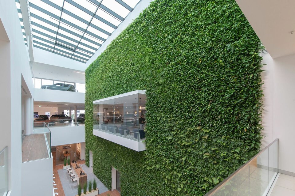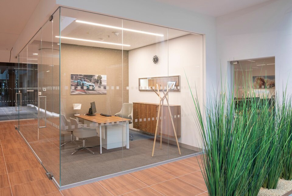 Die Lindner SE war in zwei Teilaufträgen für die Ausführung und die Koordination von zahlreichen Innenausbauleistungen verantwortlich, womit ein Beitrag zum hochwertigen Ausbau der Ausstellungs- und Servicebereiche geleistet wurde. Aus dem Produktspektrum der Lindner Group finden sich Einhängedecken und Gipskartondecken mit integrierter Heiz- und Kühltechnologie, welche für effiziente Temperierung der Flächen sorgen und gleichzeitig zum nachhaltigen Gebäudekonzept beitragen. Darüber hinaus schaffen Lindner Glastrennwände räumliche Separation bei gleichbleibend hoher Transparenz, um vertrauliche Kundengespräche zu ermöglichen.