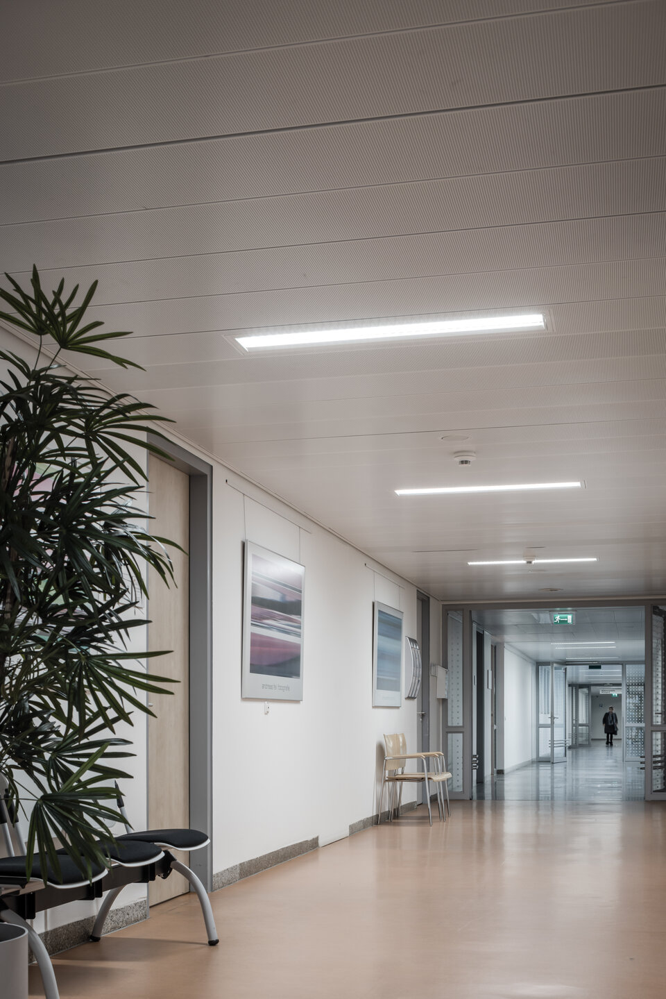 Hierfür entwickelte Lindner eine eigene Lösung, die auch die Weiterverwendung der bestehenden Leuchtengehäuse, Abdeckungen und Raster ermöglichte. Dies trägt nicht nur zur Ressourcenschonung bei sondern reduzierte auch den Aufwand für die Montage erheblich. Dank dieser durchdachten Umrüstsätze wurde das Klinikum mit einer zukunftsfähigen und energieeffizienten Beleuchtung ausgestattet, ohne den laufenden Betrieb zu beeinträchtigen.