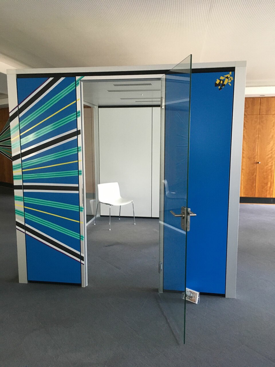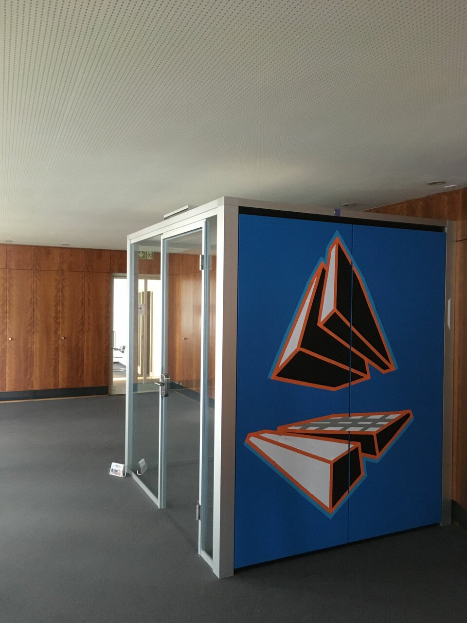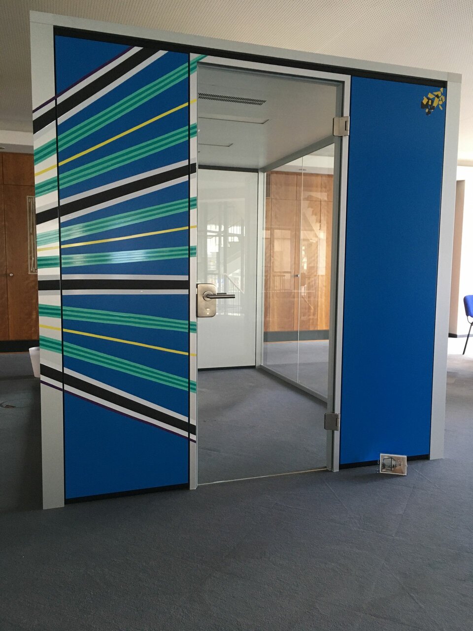 Hier standen drei „alte“ Lindner Cubes bereit für die Demontage. Der perfekte Zeitpunkt, das Thema Reuse von Lindner Produkten in die Praxis umzusetzen. Der modulare Aufbau und Standardmaße der Cubes ermöglichten, dass die Cubes in der neuen Heimat München Eins zu Eins wieder aufgebaut werden konnten und nur noch, als kleines Refresh, von einem Tape Artist neu gestaltet wurden.