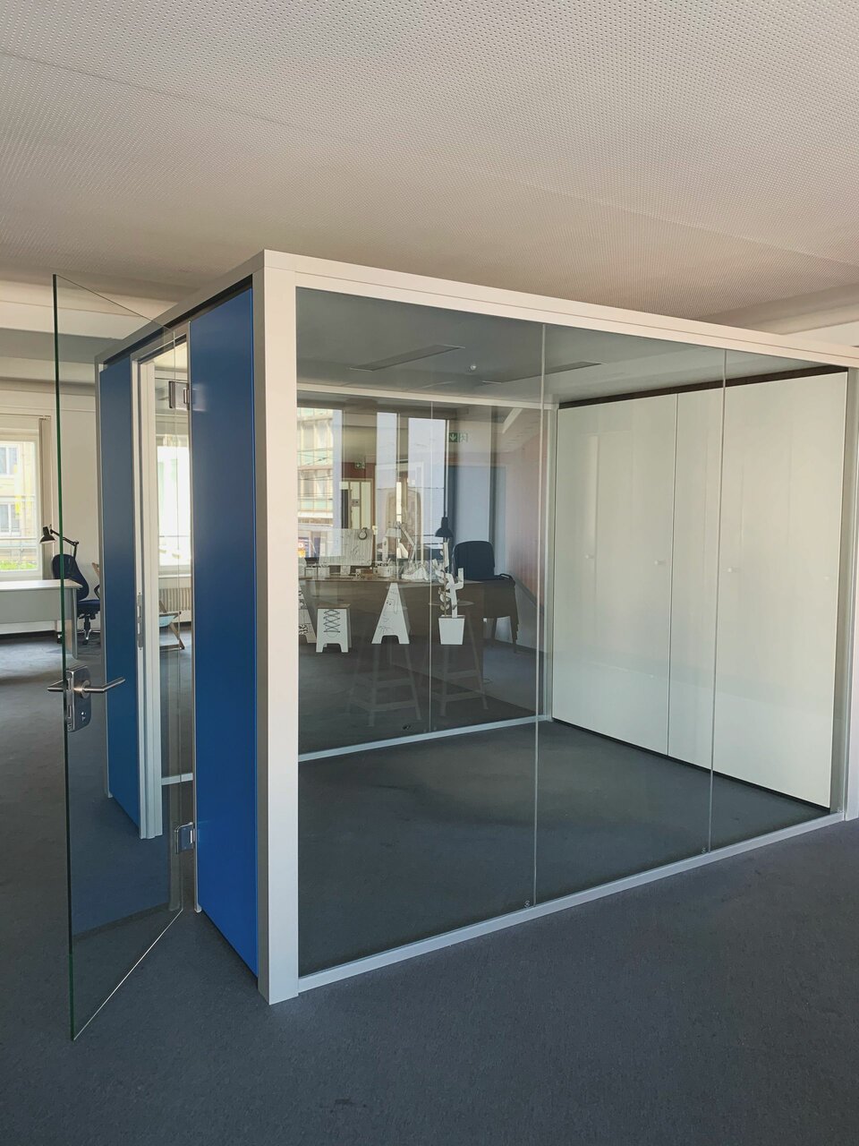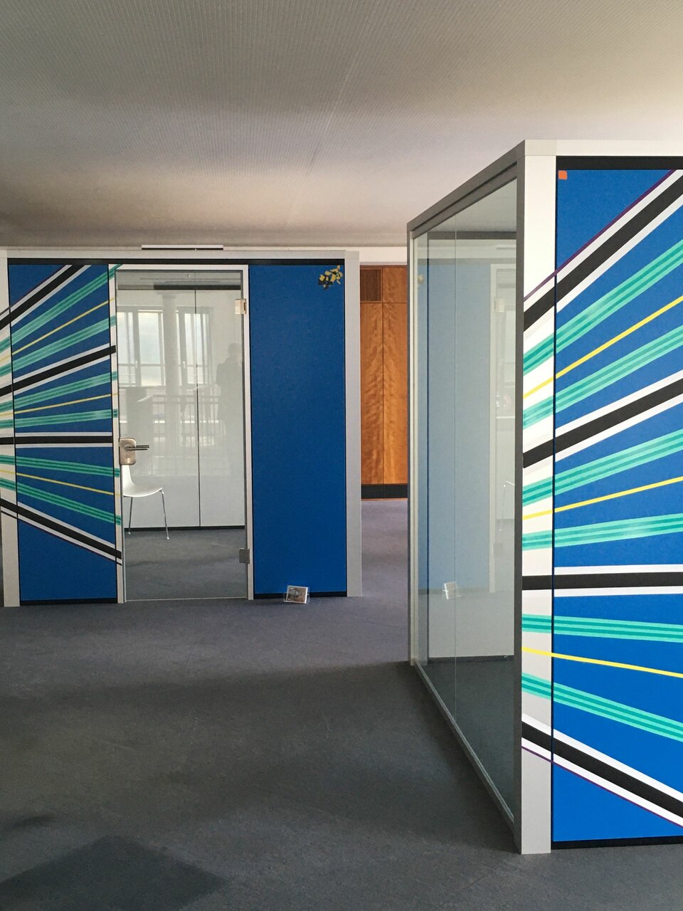 Mit einer sehr kurzen Laufzeit von nur einem Jahr war klar: Für die Raumgestaltung brauchte es flexible, pragmatische Lösungen, die trotzdem eine gute Arbeitsatmosphäre bieten und nach Ende der Zwischennutzung schnell rückbaubar sind. Die Antwort hierzu fand man nicht in München, sondern in Frankfurt.