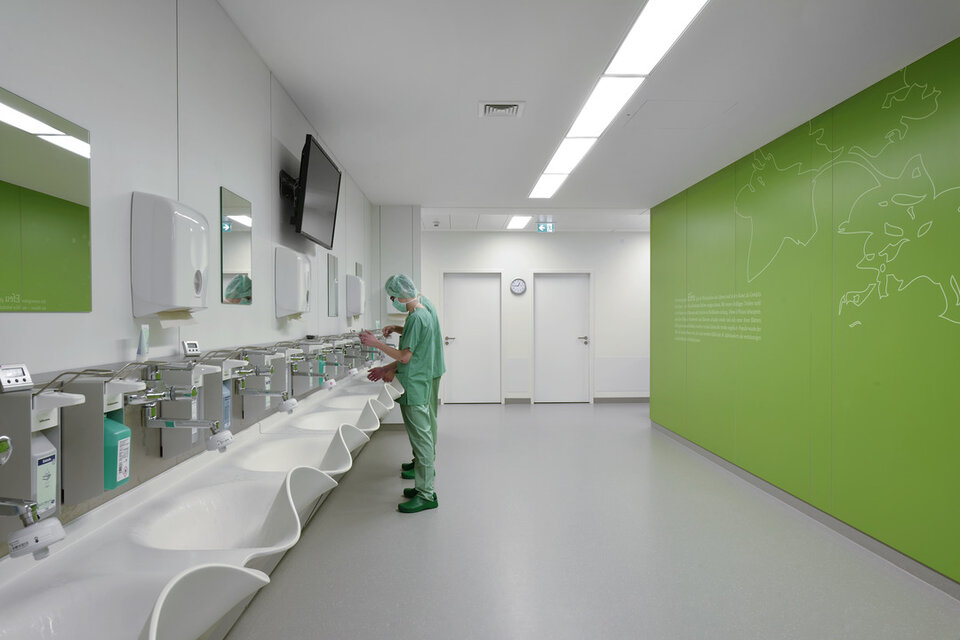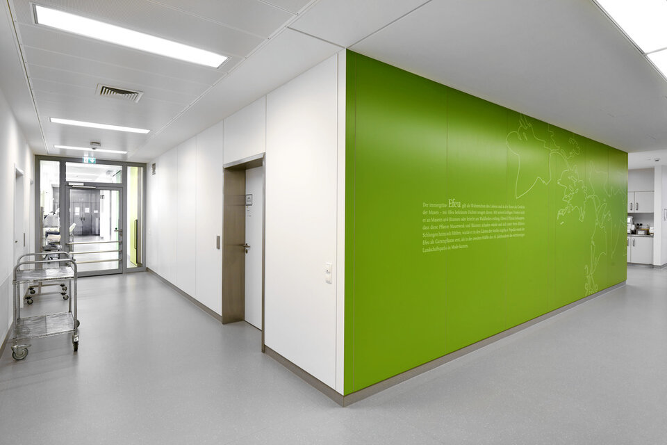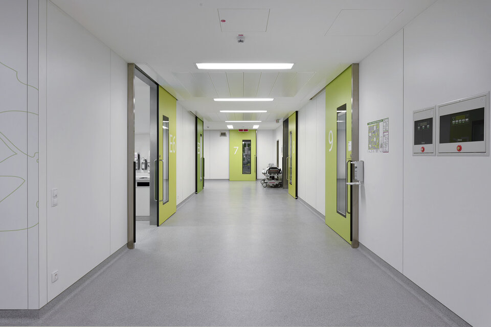 Die Lindner Reinraumtechnik GmbH trug zum Innenausbau der Intensiv- und Infektionsstationen bei. Zusätzlich war man auch für den Ausbau des gesamten OP-Bereichs verantwortlich. Auch die Planung, Fertigung und Installation der Schiebetüren in allen Geschossen übernahm das Unternehmen.