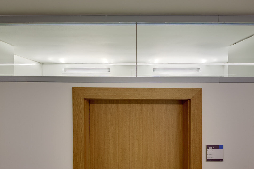 Die Lindner Group erbrachte bei diesem Projekt ein umfangreiches Paket an Leistungen. Hierzu zählen zum einen Gipskartonwände, welche Dank integrierter Oberlichtverglasung - teils als Sonderkonstruktion ausgeführt - für eine natürliche und angenehme Beleuchtung der Gänge sorgen. Auch im Bereich Decken bot Lindner die überzeugende Lösung für eine Vielzahl von Anwendungsbereichen. So schaffen im Sitzungssaal des Kreistages Heiz- und Kühldecken aus Gipskarton selbst bei hitzigen Debatten eine behagliche Atmosphäre. Für Gemeinschaftsräume wie die hauseigene Kantine wählte man stattdessen Deckensysteme aus Metall, zumeist auch mit Temperierungsfunktion.