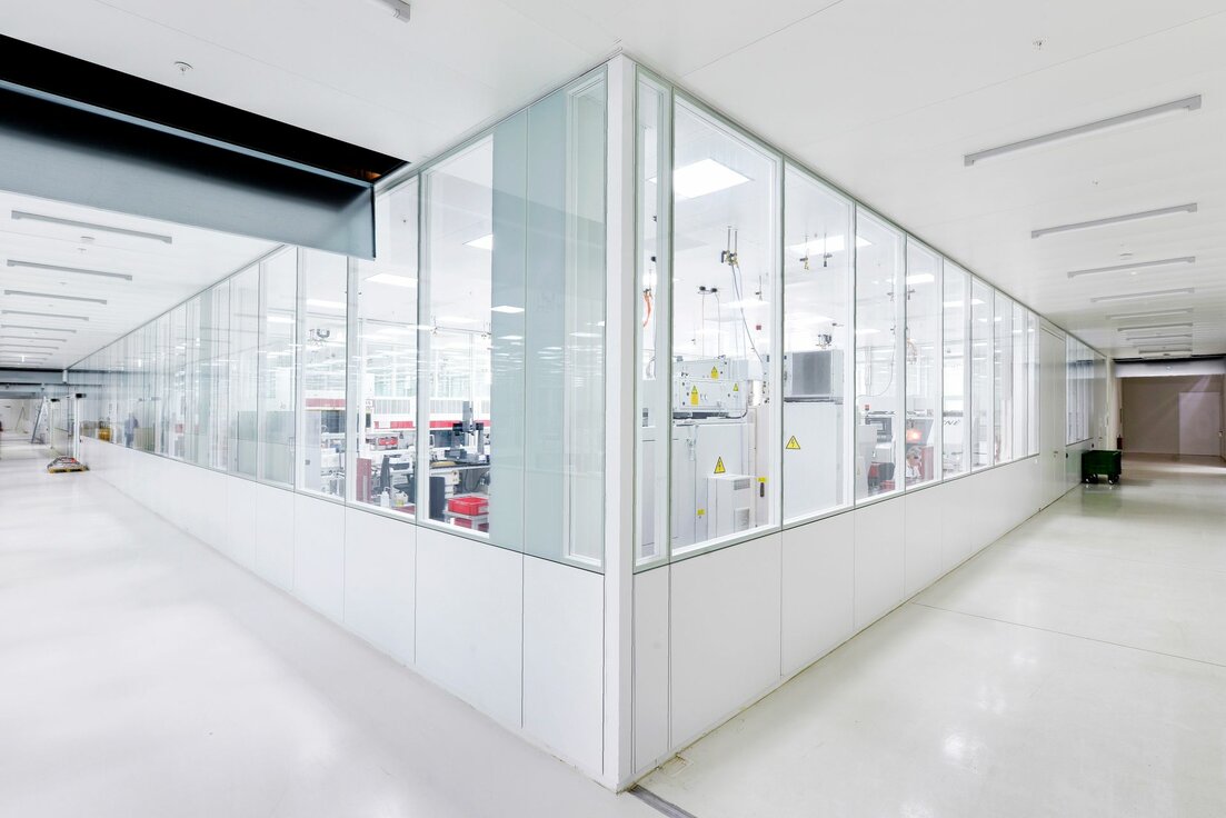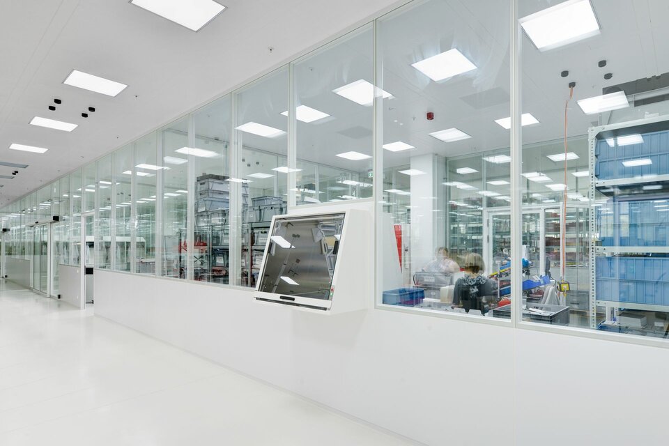 Bei diesem Projekt stattete Lindner große Teile des Verwaltungstraktes und der Produktionsbereiche mit verschiedenen Innenausbaulösungen aus, im Produktionstrakt wurden vorrangig Reinraumprodukte verbaut.