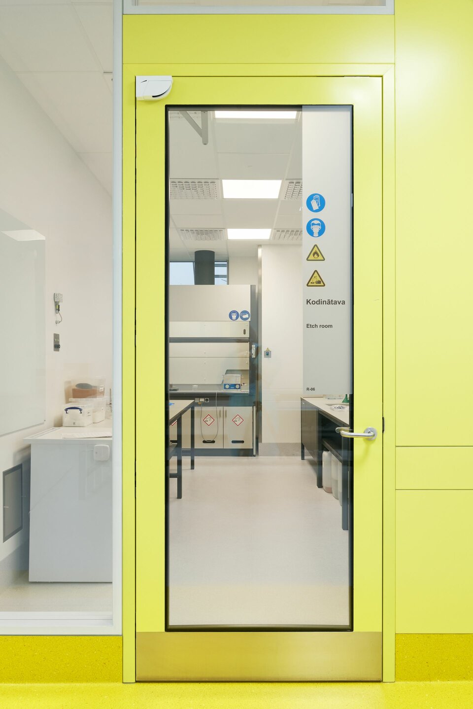 Lindner produzierte, lieferte und montierte rund 850 m² Multiclean COP-Trennwände inklusive Verglasungen. Diese sorgen in Kombination mit Flügeltüren und automatischen Schiebetüren für eine funktionale und moderne Abtrennung innerhalb des Gebäudes. Zusätzlich vervollständigen 140 m² Clip K3-Decken, einschließlich Beleuchtungskörper, den Hauptsitz in Livani. Um den hohen Anforderungen von Light Guide gerecht zu werden, installierte Lindner auch 200 Rückluftgitter mit Rückluftschächten und fünf UV-Desinfektionsmaterial-Durchreichen. Diese ermöglichen eine chemikalienfreie Desinfektion, indem sie mittels UV-Strahlung Viren, Bakterien und Pilze in Sekunden abtöten.