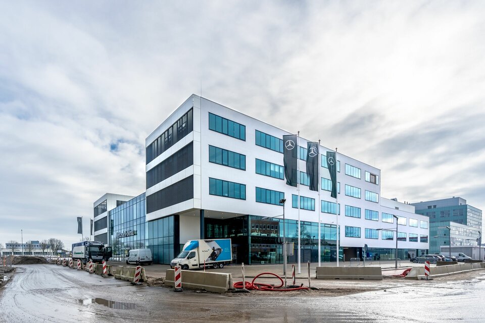Der neue Hauptsitz von Mercedes Benz in den Niederlanden steht ganz im Zeichen von „Circular Building“. Hierfür wandelten die Architekten ein Bestandsgebäude in Nieuwegein, das seit mehreren Jahren leer stand, in einen neuen, nachhaltigen Bürokomplex um. Auf diese Weise können sowohl CO2-Emissionen als auch enorme Mengen an Energie eingespart werden. Die Sanierung wurde 2018 von dem Generalunternehmer Bouwbedrijf Wessels Zeist fertiggestellt.
