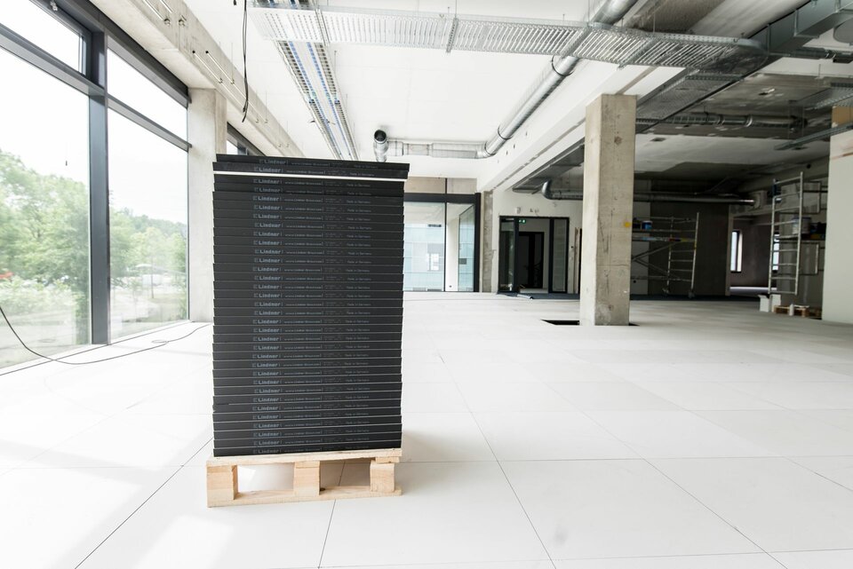 Dass Lindner als optimaler Partner für umweltfreundliches Bauen gilt, war auch dem Auftraggeber bewusst. Die Delta Development Group setzt selbst ihren Schwerpunkt auf nachhaltiges Bauen im Sinne von Cirular Economy und Cradle to Cradle: Lindner verbaute 8.150 m² des baubiologisch empfohlenen Doppelbodensystems NORTEC in dem Bürogebäude.