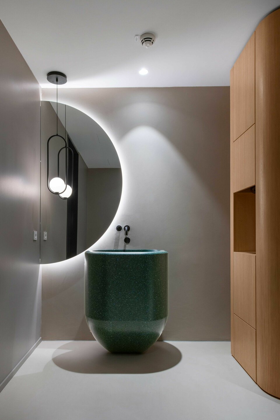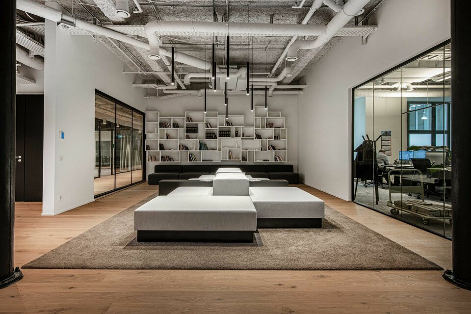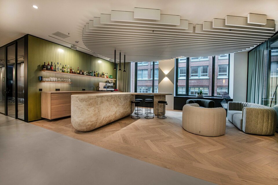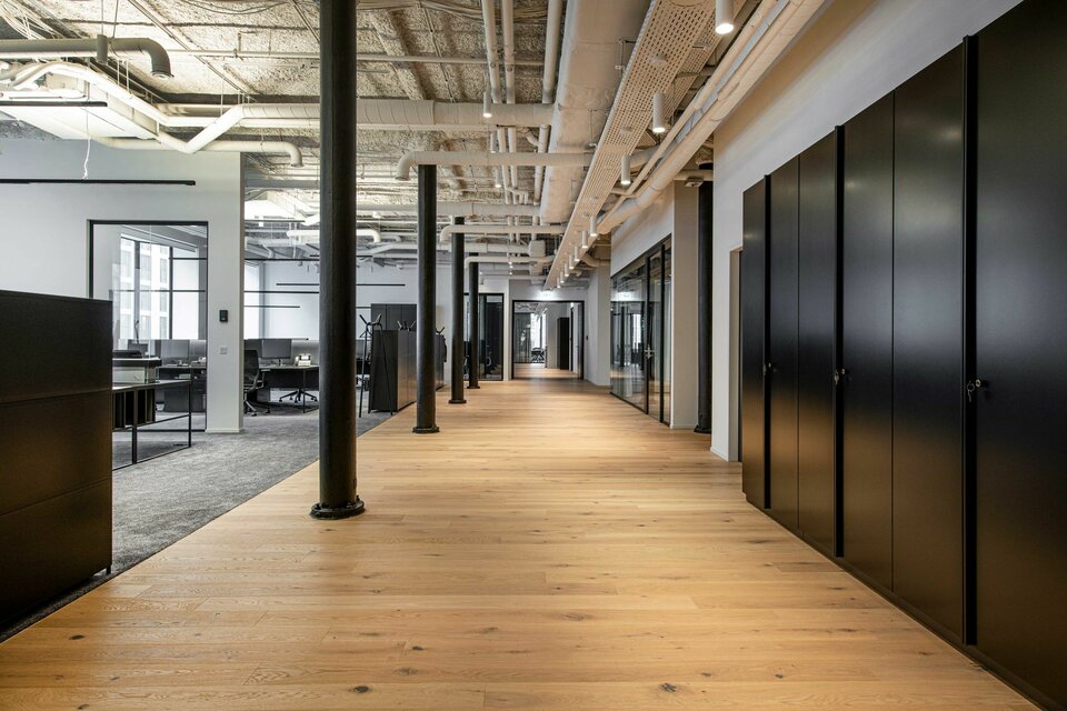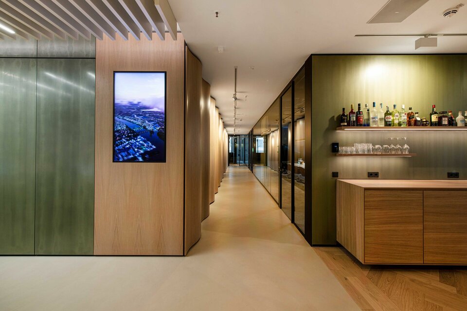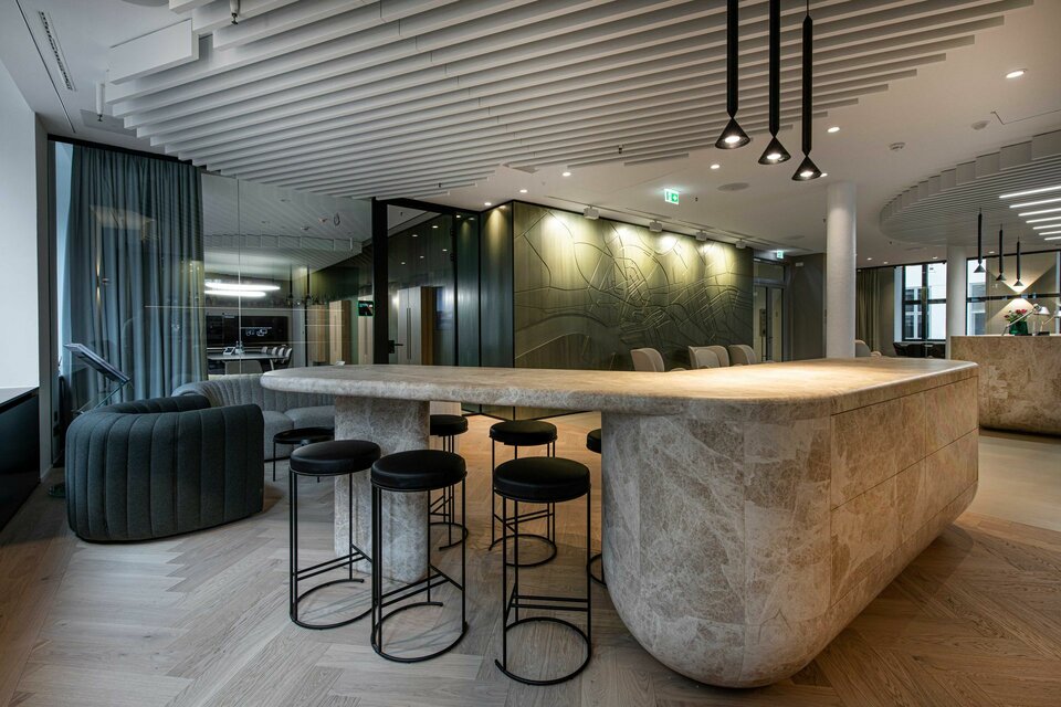 Anfang 2022 wurde die Lindner SE gemeinsam mit Pinck TGA-Planung und Kamleitner-Canales Entwurfs-Planung mit einer umfassenden Neugestaltung von ca. 1.800 m² im ersten OG beauftragt. Neben sehr hohen ästhetischen Ansprüchen lag der Fokus auf einem zukunftsorientierten, nachhaltigen Gesamtkonzept für die neuen Büroflächen. Dies zeigt sich sowohl in der technischen Ausstattung als auch in der Wahl der Materialien, wie z. B. Echtholzparkett und Wandbekleidungen aus Eiche oder der speziellen Metalllackierung an Trennwänden, Tresen mit Natursteinverkleidung sowie der aufwendigen Spachteltechnik für Wände und Böden.