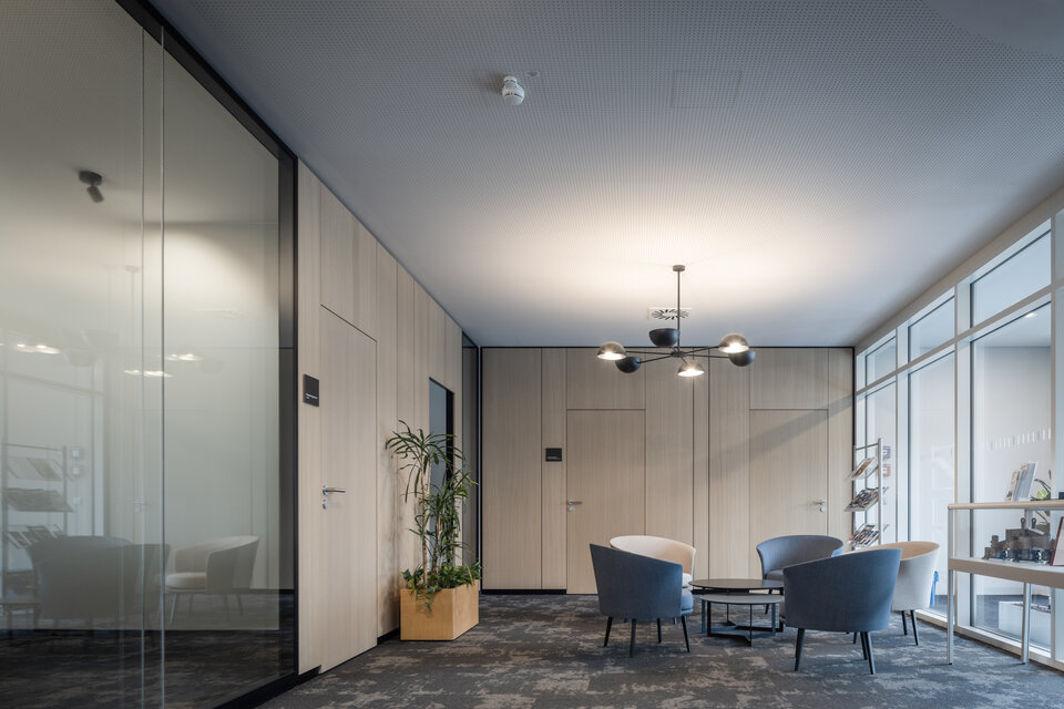 Die Innenarchitektur des Gebäudes verbindet Offenheit mit gezielter Zonierung, um verschiedene Arbeitsweisen zu unterstützen. Ein entscheidender Beitrag hierzu kam von der Lindner Group mit hochwertigen Trennwandsystemen.