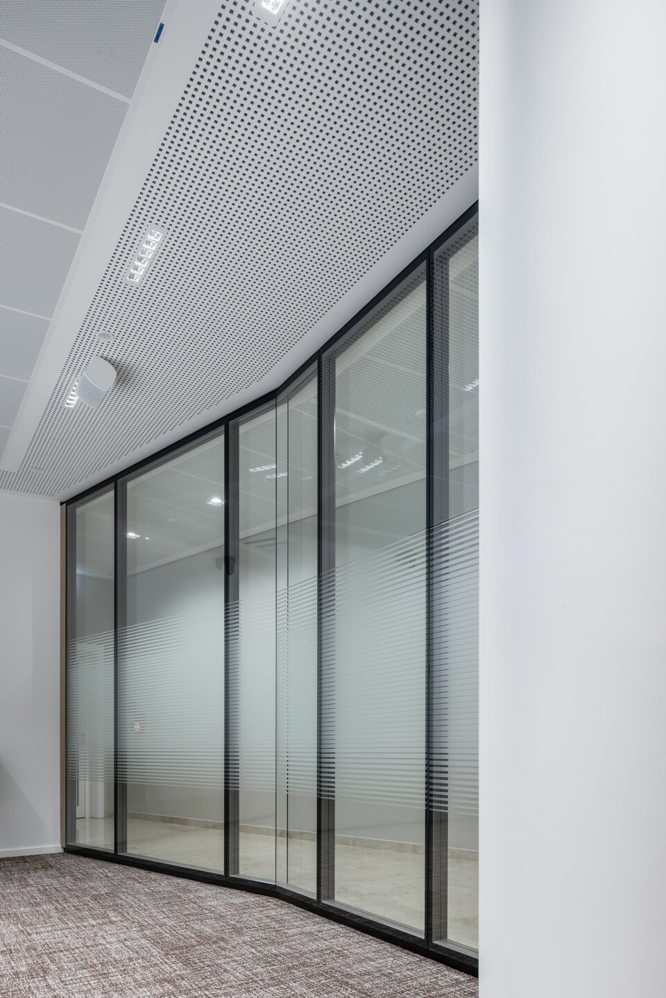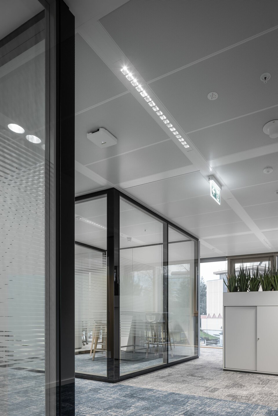 Lindner war maßgeblich am Büroausbau des Unternehmens beteiligt und verbaute einige Systemprodukte aus eigener Fertigung. Darunter befinden sich zahlreiche elegante Lösungen wie die Glastrennwände Lindner Life Freeze, die Ästhetik und Funktionalität gekonnt vereinen. Die Trennwände Lindner Logic 100 Timber fungieren mit ihrer Echtholzoberfläche als optischer Gegenspieler. Um einen angenehmen und reibungslosen Luftwechsel in den Räumlichkeiten zu garantieren, wurden die Lindner Plus Überstromelemente in die Trennwandsysteme integriert. Die Lindner Group hat zudem eine Palette von Türen installiert, darunter Glastüren als auch Holztüren, die den hohen Schallschutzanforderungen mehr als gerecht werden. Mit dem Doppelboden LIGNA und den Hohlboden FLOOR and more® sorgte Lindner außerdem für einen stabilen Untergrund in den Bürobereichen. Ein besonderes Highlight sind die sogenannten „Think Tanks“: Bestehend aus diversen Lindner Verglasungen schaffen diese einen Rückzugsort für Kurzbesprechungen und Kreativarbeit.