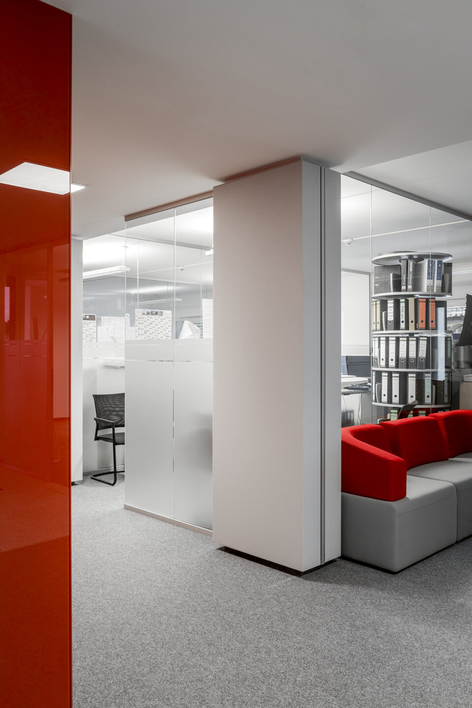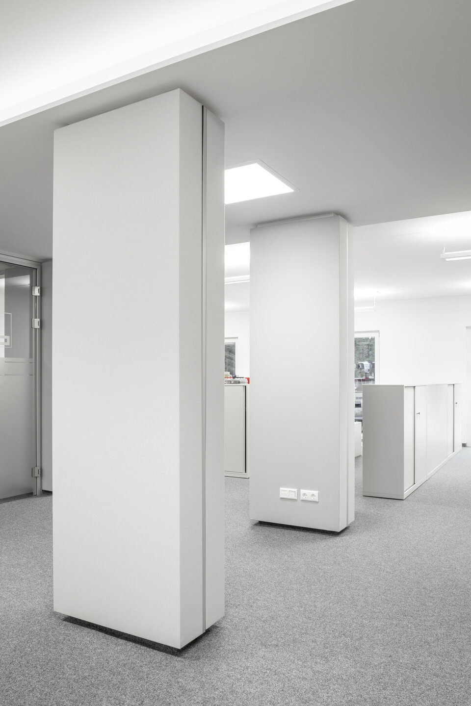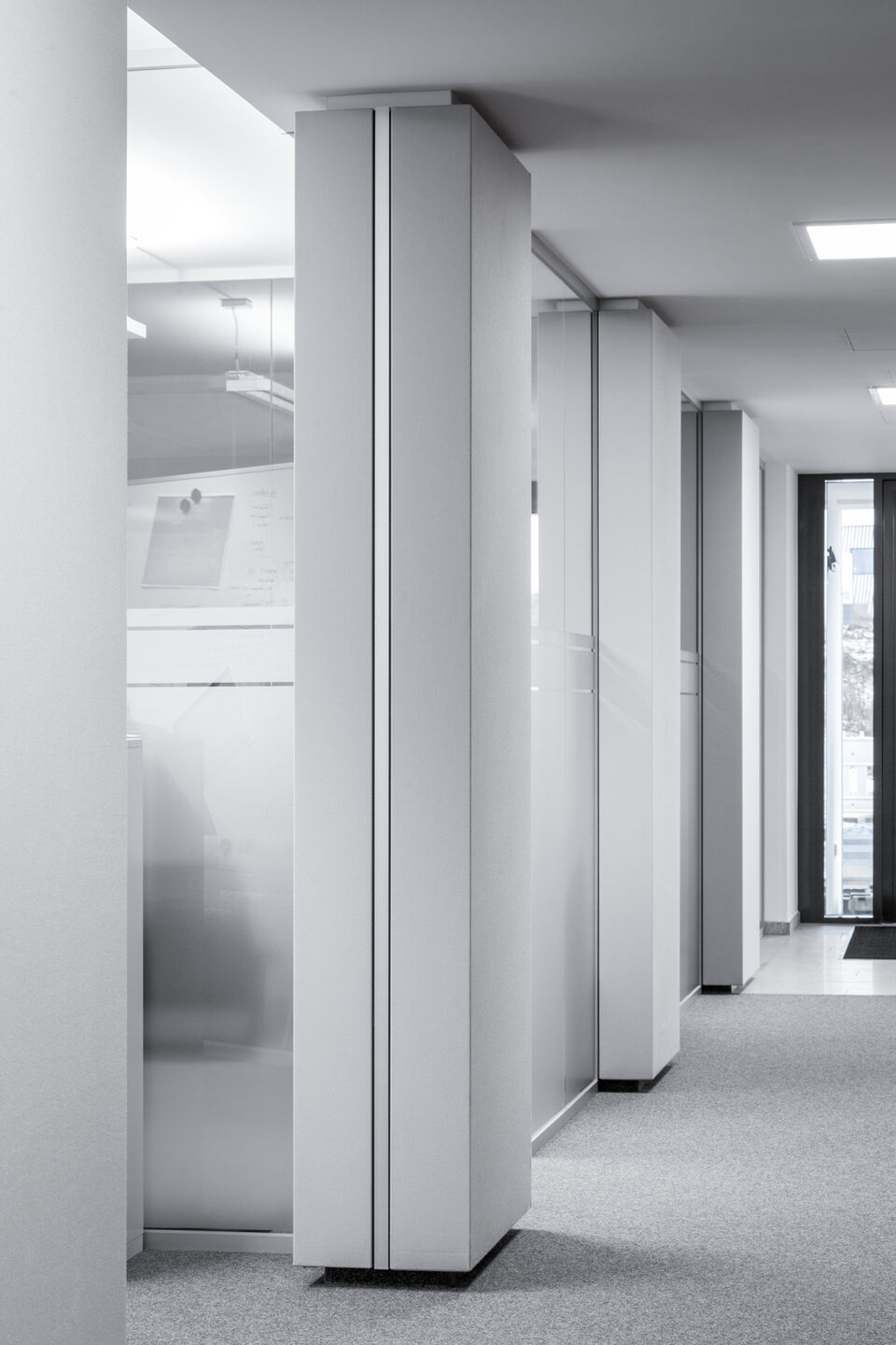 Vom Standort Deining aus koordiniert die Max Bögl Verkehrstechnik GmbH seine Aktivitäten auf Deutschlands Straßen. Zur Erweiterung der Kapazitäten wurde ein neues Bürogebäude geschaffen. Lindner hat zum Innenausbau der Büroflächen mit Glastrennwänden des Typs Lindner Life Pure 620 mit integrierten Ganzglastüren sowie Schallabsorbern beigetragen. Mit diesen Produkten wird eine Zonierung der Büroumgebung und die Abtrennung von Besprechungsräumen erreicht. Gleichzeitig verbessern Schallabsorber die akustische Raumqualität durch Anbringung an Säulen sowie schallharten Decken und Wänden. Hinsichtlich der Decken entschied man sich für Deckensegel mit Stoffbezug, bei den Wänden kamen Breitbandkompaktabsorber zum Einsatz, ebenfalls mit Stoffbezug.