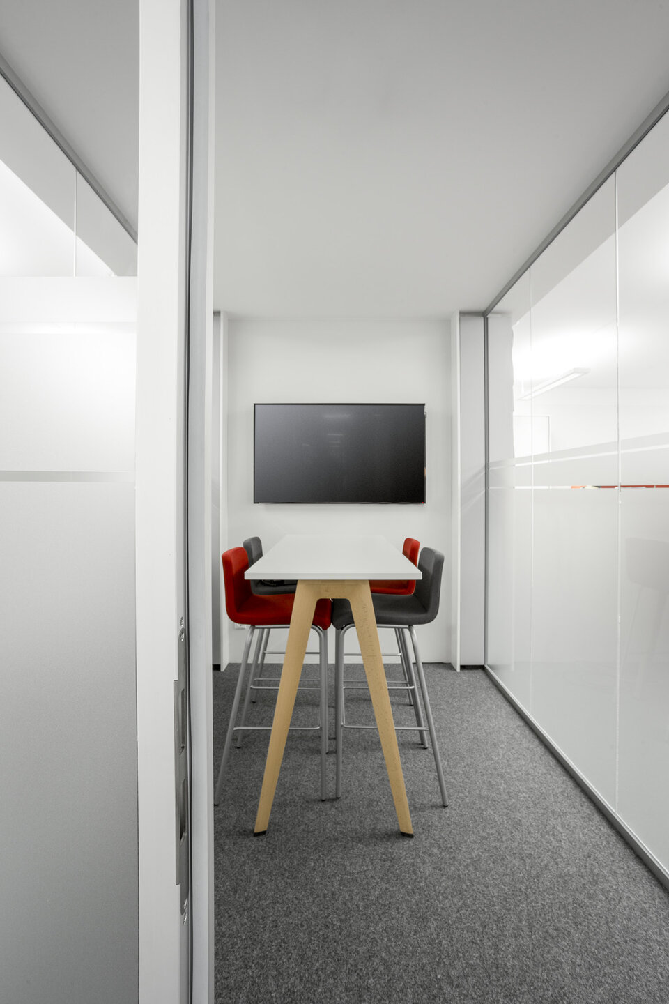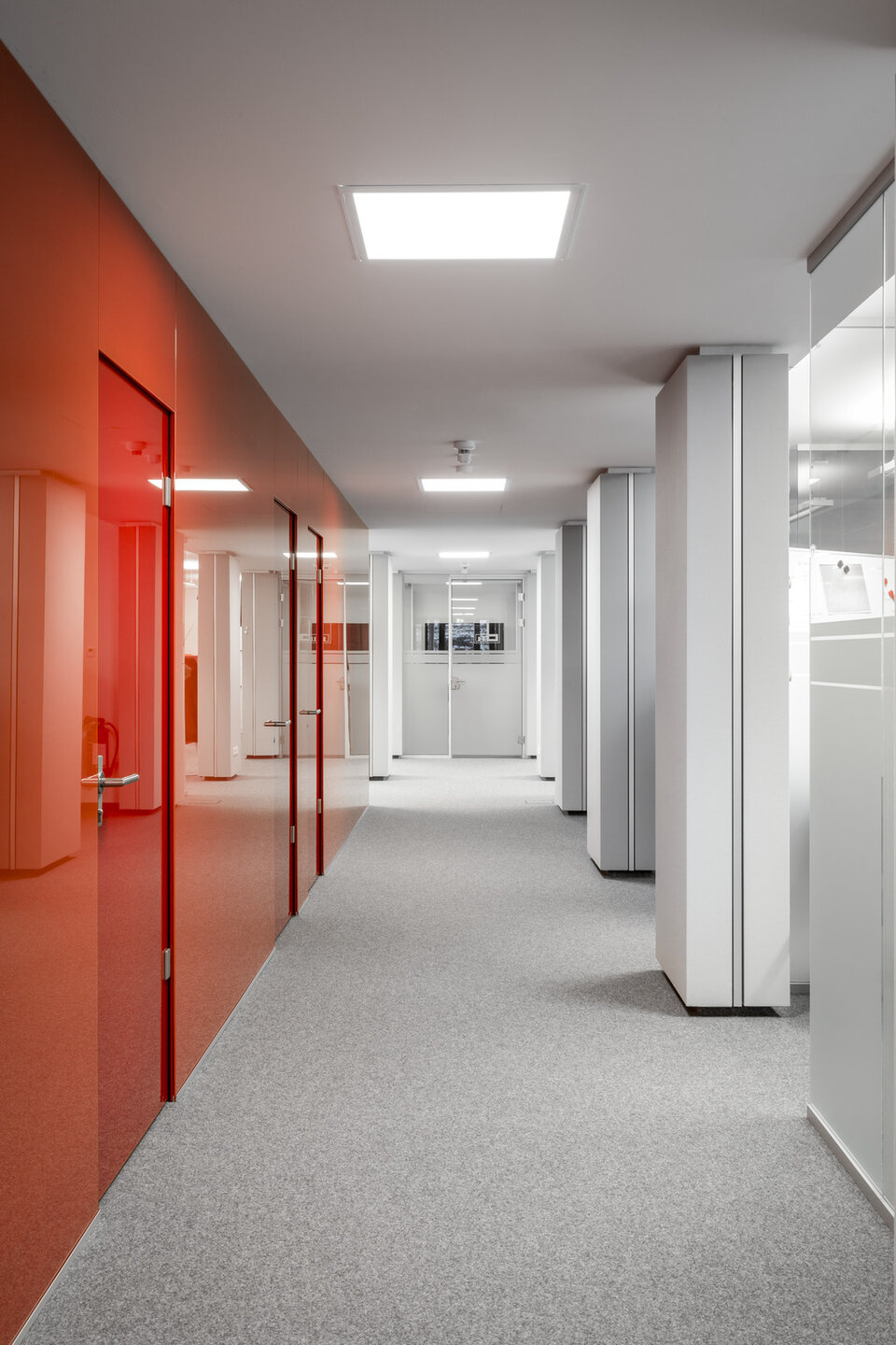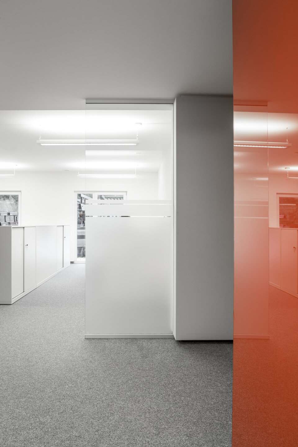Vom Standort Deining aus koordiniert die Max Bögl Verkehrstechnik GmbH seine Aktivitäten auf Deutschlands Straßen. Zur Erweiterung der Kapazitäten wurde ein neues Bürogebäude geschaffen. Lindner hat zum Innenausbau der Büroflächen mit Glastrennwänden des Typs Lindner Life Pure 620 mit integrierten Ganzglastüren sowie Schallabsorbern beigetragen. Mit diesen Produkten wird eine Zonierung der Büroumgebung und die Abtrennung von Besprechungsräumen erreicht. Gleichzeitig verbessern Schallabsorber die akustische Raumqualität durch Anbringung an Säulen sowie schallharten Decken und Wänden. Hinsichtlich der Decken entschied man sich für Deckensegel mit Stoffbezug, bei den Wänden kamen Breitbandkompaktabsorber zum Einsatz, ebenfalls mit Stoffbezug.