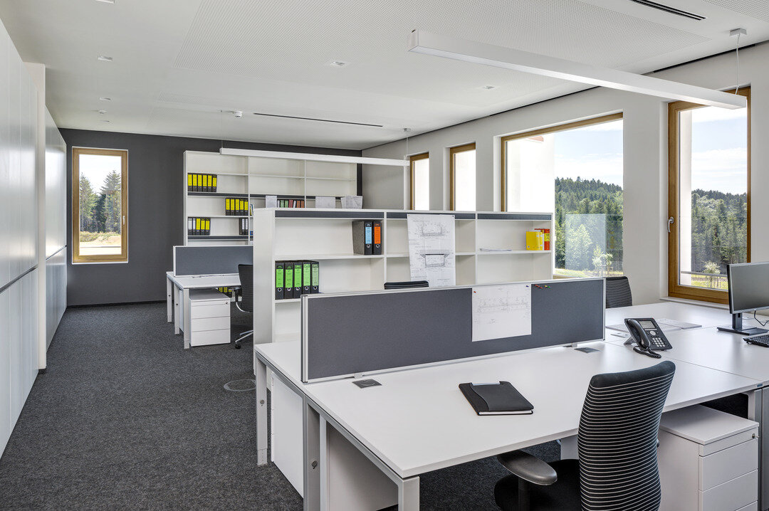 Die mittelständische Bauunternehmung Rädlinger baute sich in seiner 50-jährigen Geschichte ein breites Spektrum an Kompetenzen in verschiedenen Geschäftsfeldern des Bausektors auf. Die Sparte Ingenieurbau erhielt 2016 im niederbayerischen Windorf einen neuen Verwaltungssitz, der mit knapp 2.000 m² Nutzfläche über drei Stockwerke genug Platz bietet um dem Wachstumstrend des Unternehmens auch in Zukunft gerecht zu werden. Der Großteil der Flächen im Neubau wird von offenen Büroräumen eingenommen. Ein zentraler Schulungsraum schafft Raum für groß angelegte Schulungen wie auch Konferenzen und Veranstaltungen. Komplettiert wird das Raumangebot durch Pausen- und Fitnesseinrichtungen für die Mitarbeiter.