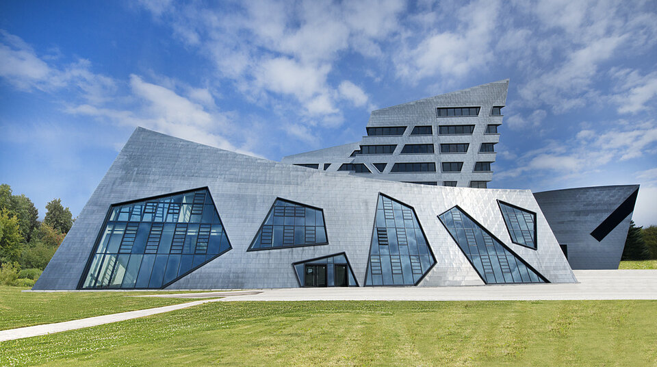 Mit dem neuen Zentralgebäude schuf die Leuphana Universität Lüneburg einen direkten Kontrast zu den restlichen Anlagen der Lehranstalt, welche in einem ehemaligen Kasernengelände eingerichtet sind. Der futuristische Bau ist als Seminar- und Forschungszentrum konzipiert, bietet darüber hinaus einen Audimax für 1.200 Zuschauer, eine Caféteria mit 200 Plätzen und nicht zuletzt Raum für Begegnungen. Entworfen wurde das Gebäude von Daniel Libeskind, welcher selbst mehrere Jahre eine Professur in Lüneburg inne hatte.