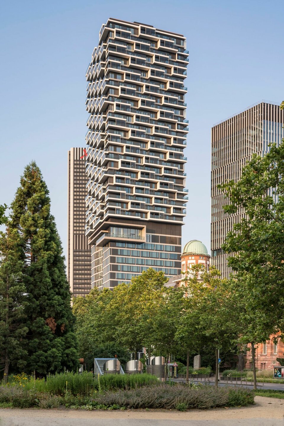 „Ein Hochhaus wie ein Maßanzug“ diesen Anspruch setzen die Architekten von Cyrus Moser auch an das Hybrid-Hochhauses im Senckenberg Quartier in Frankfurt am Main. Das 145 Meter hohe Gebäude steht heute auf dem Grundstück des 2014 gesprengten AfE-Turms zwischen Westend und Bockenheim, direkt neben dem historischen Senckenberg Museum.