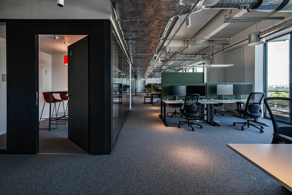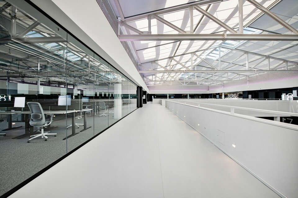 Für ausreichend Rückzugsbereiche und eine effektive Raumgliederung in den Bürobereichen wurden Lindner Life Pure 620 Systemtrennwände aus Glas eingesetzt, die sowohl eine flexible Nutzung der Flächen ermöglichen als auch zur Schaffung einer offenen und hellen Raumgestaltung beitragen.