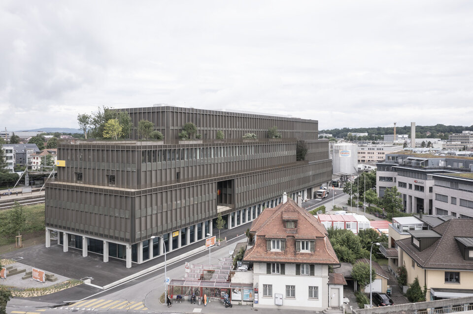 Das ehemalige Industrieareal der „Acifer-Halle“ grenzt direkt an den Bahnhof Ostermundigen an. Aus Lärmschutzgründen wurde diese vor Jahren still gelegt, das Gelände lag seit dem brach. Erst mit der Übernahme durch Projektentwickler HRS Real Estate AG kam wieder mehr Bewegung in das Areal. Ein passender Ort für den Touring Club Schweiz (TCS), der hier nun als Langzeitmieter seine Deutschschweizer Verwaltungsstandorte zentral bündelt. Insgesamt entstanden auf einer Nutzfläche von über 18.000 m² 650 neue Arbeitsplätze sowie Einzelhandel- und Gewerbeflächen im Erdgeschoss. Die Fassade nimmt mit einer braunen Farbgestaltung Bezug auf die vormals industrielle Nutzung. Die terrassierte Abstufung und Dachbegrünung sorgt für eine dynamische Aussenarchitektur. Im Gebäudeinneren jedoch setzte man auf eine helle und ruhige Gestaltung mit viel weiß, hellen Holztönen und grau gemusterten Teppichböden.