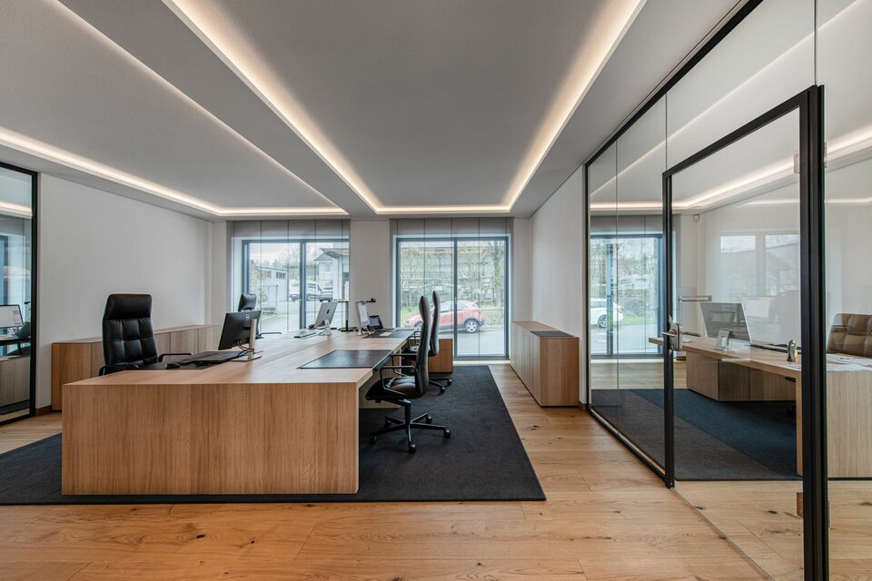 Lindner Generalplanung war bei dem Projekt für die Innenarchitektur, den Innenausbau und die TGA im Bereich Elektro zuständig. Dabei waren auch die Gewerke Boden, Decke und Wand Teil des Angebots. Vom ersten Workshop bis zur erfolgreichen Fertigstellung stand Lindner Generalplanung in regelmäßigem Austausch mit dem Kunden – die kooperative Arbeitsweise zahlte sich insbesondere beim Projektergebnis aus: Das moderne Bürogebäude beinhaltet viele klassische und traditionelle Elemente und ist damit perfekt auf die Anforderungen des Bauherrn zugeschnitten.
