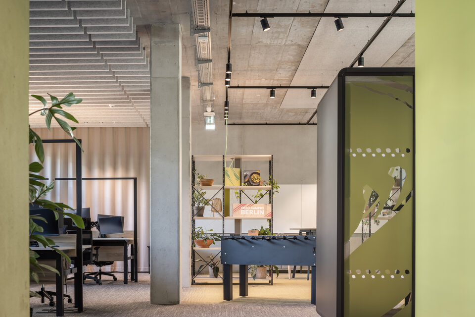 In der Ritterstraße 16-18, inmitten des bekannten Berliner Rollkutschenviertels, entstand ein modernes Büro-, Verwaltungs- und Gewerbegebäude. Durch die hohe Dichte an Firmen und produzierendem Gewerbe eignet sich die Lage perfekt für alle etablierten und aufstrebenden Unternehmen – wie auch HelloFresh, welches als Mieter in den Gebäudekomplex zog. Das Farbkonzept des innovativen Lebensmittellieferanten findet sich ebenso in den Räumen wieder: Die Bürowelten erstrahlen in frischem Gelb, Grün und Rosa.