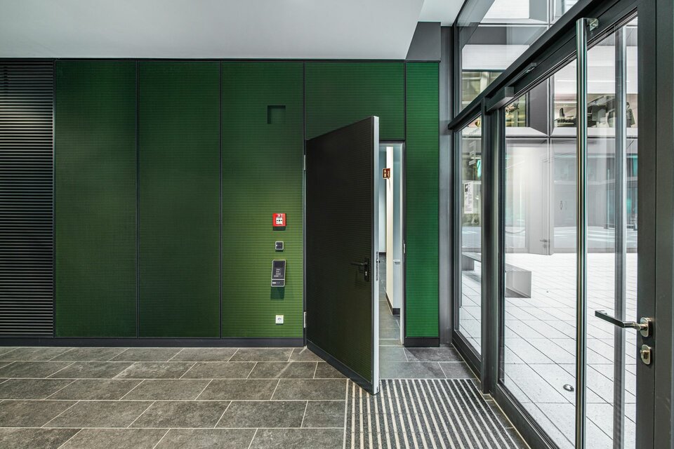 Die Lindner Group hat im neuen Hauptsitz der SachsenEnergie AG maßgebliche Akzente im Innenausbau gesetzt. Als Wandbekleidung auf insgesamt 320 m² schafft die Lindner COMPlacq durch ihre schallabsorbierende Mikroperforation eine ruhige Umgebung. Belegt mit einem speziellen Architekturgewebe aus Aluminium, setzt sie zusätzlich optische Highlights. Mit einem geringen Flächengewicht von 5,5 kg/m² und der nicht brennbaren Materialeigenschaft bietet die Leichtbauplatte sowohl Funktionalität als auch Sicherheit. Ergänzt wird die Ausstattung durch flächenbündig integrierte Nischentüren, Rohrrahmen- und Stahlblechtüren sowie stilvolle Aufzugsportale, die sich perfekt in das architektonische Konzept einfügen. Die Integration der Zu- und Abluftsysteme sowie platzsparende Schiebetürlösungen erfüllen moderne Anforderungen an ein gesundes Raumklima und eine flexible Raumnutzung.