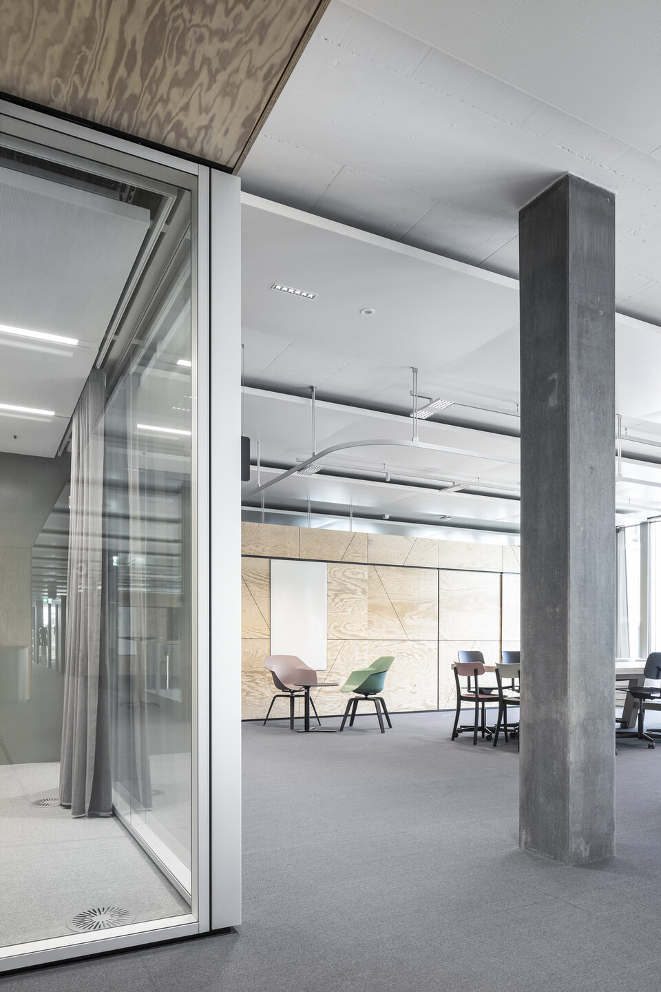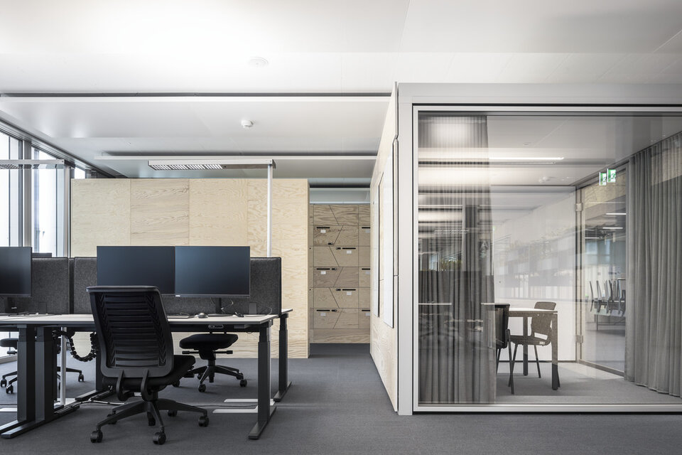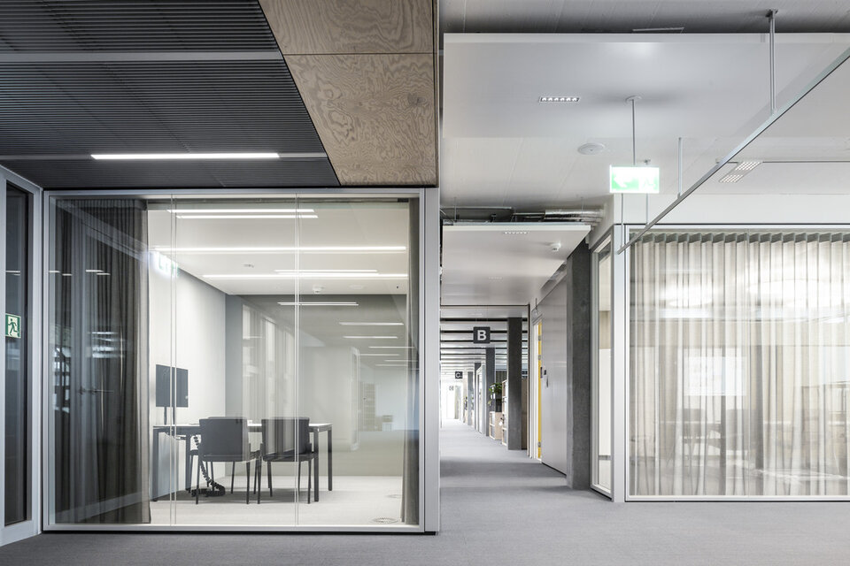 Die ca. 1.700 Mitarbeiter der Informatikabteilung der Schweizerische Bundesbahnen AG, kurz SBB, waren bisher verteilt auf mehrere Berner Standorte untergebracht. Mit der Fertigstellung des „Byte“ auf dem Areal der WankdorfCity in Bern wurde der IT-Bereich der SBB nun erstmalig an einem festen Standpunkt zentralisiert. Lindner realisierte im Byte Wand- sowie Bodensysteme. 58 Raum-in-Raum-Systeme Lindner Cube wurden verbaut, die zur Hälfte vollverglast sind und zur Hälfte aus Vollwänden vom Typ Logic Timber bzw. Logic Metal bestehen. Die Vollwände sind korridorseitig mit weißer Melaminharzbeschichtung und raumseitig mit magnetischer Whiteboard-Oberfläche mit Monitorbefestigungen ausgeführt. Den Zugang zum Cube bildet eine Ganzglastüranlage mit Schallschutz. Für den Luftaustausch zwischen den Büroflächen und den Cubes sorgen in die Vollwandelemente integrierte Überströmelemente. Die Frischluftzufuhr erfolgt über die bauseitige Lüftungsanlage durch die doppelte Akustik-Metallkühldecke in den Cubes, die schalllängsgedämmt ausgeführt wurde. Im ersten Obergeschoss sowie in den Kernbereichen des Gebäudes befinden sich außerdem das Ganzglaswandsystem Lindner Life Stereo 125 und das Metallwandsystem Lindner Life Hybrid 622. Auch hier werden die Metallwände von verdeckt liegenden Wandverstärkungen für die Bildschirmmontage verstärkt und von Ganzglastürelementen ergänzt. Die Bodensysteme NORTEC und FLOOR and more® sorgen für eine angenehmen auftritt. Einzeln herausnehmbare Platten erleichtern außerdem Revisionsarbeiten an den Installationen im Bodenhohlraum.
