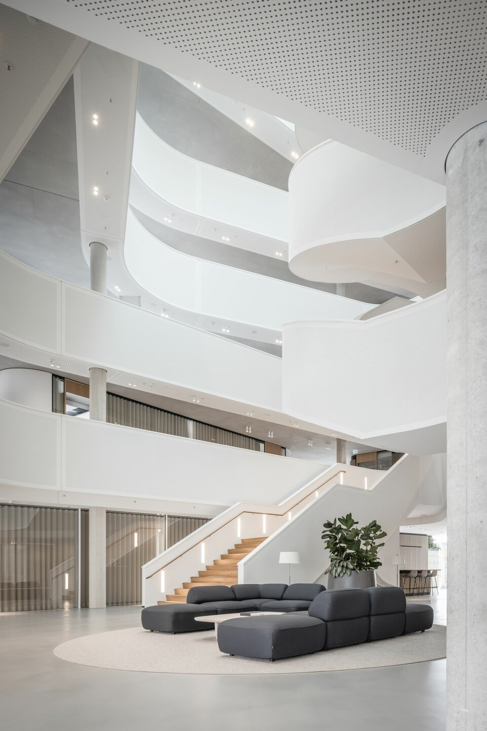 Abgerundet wurden die Lindner Leistungen durch stilvolle Foyer- und Holztreppenverkleidungen, die Wärme und Eleganz im Eingangsbereich vermitteln. Passende Holztüren mit Schall- und Brandschutz unterstreichen zudem die ästhetischen als auch funktionalen Anforderungen des Projekts.