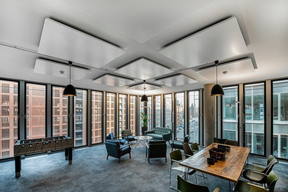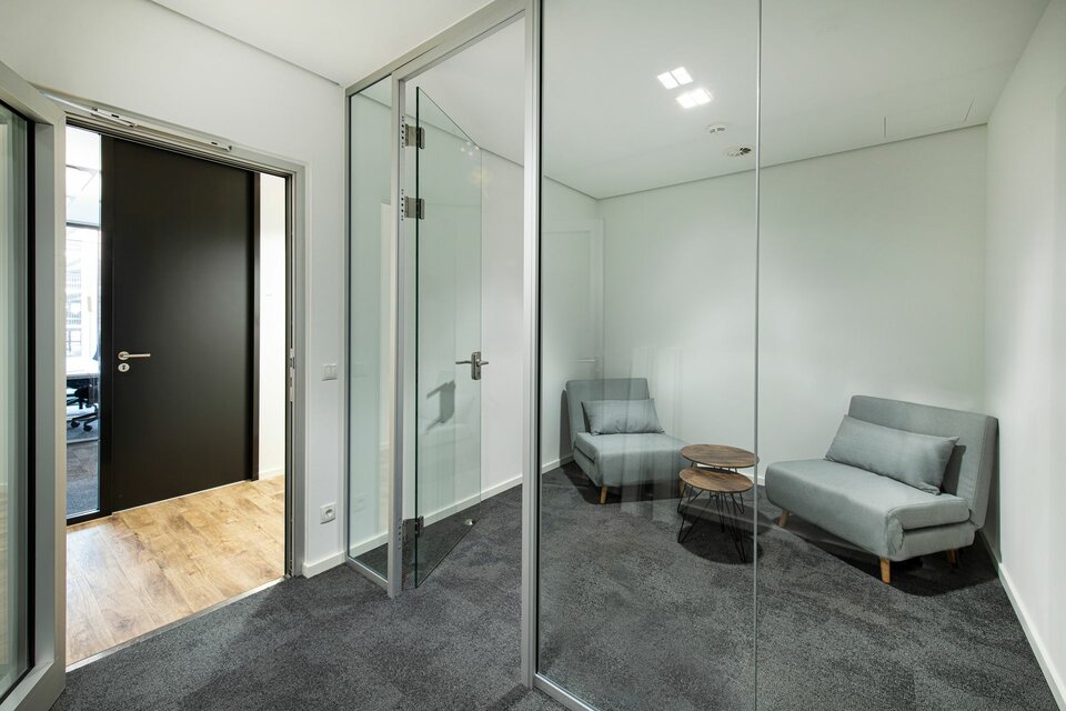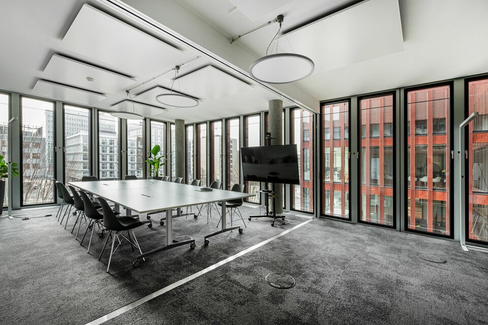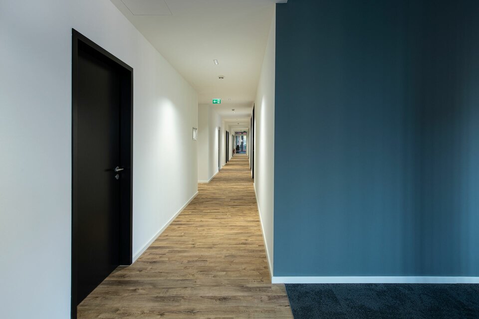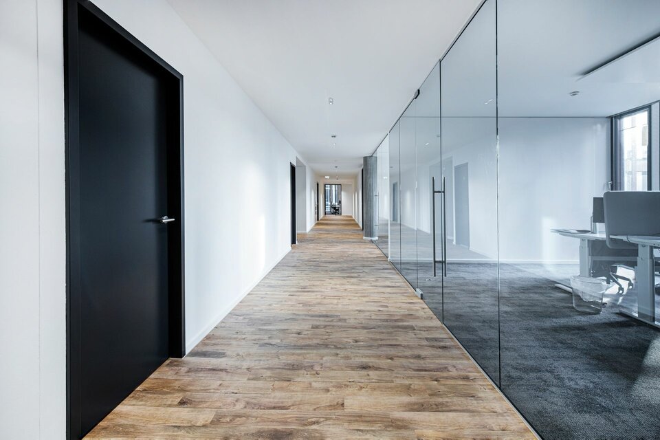 Die Lindner Group wurde als Generalunternehmer für den Mieterausbau von init im dritten Obergeschoss beauftragt und übernahm daher alle Gewerke für einen schlüsselfertigen Ausbau. Die Lindner Life 620 Ganzglaswände dienen als flexible Raumtrenner, die ebenso elegant wie funktional sind. Robuste Lindner Holztüren fungieren als Antagonist zu den transparenten Trennwänden. Das thermoaktive Deckensegel Plafotherm® DS Tabs 78 sorgt für ein angenehmes Raumklima dank energieeffizienter Heiz- und Kühltechnik. Ergänzt werden die modernen Mietflächen durch eine mobile Trennwand und eine einladende Teeküche.